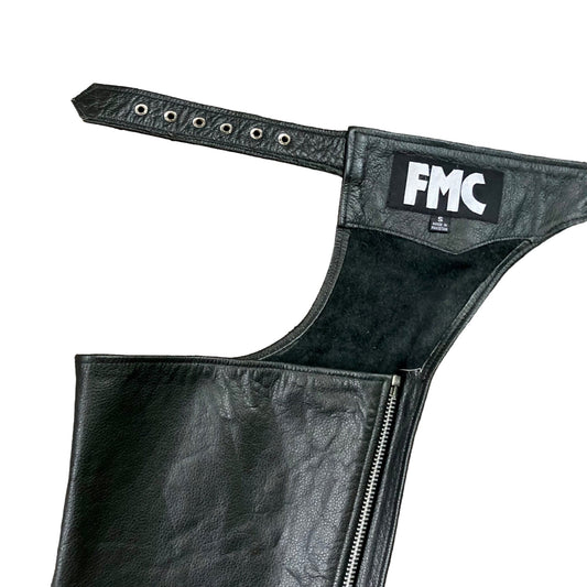 FMC Leather Motorcycle Chaps Size Small Biker Leathers Black Size Zip NICE!