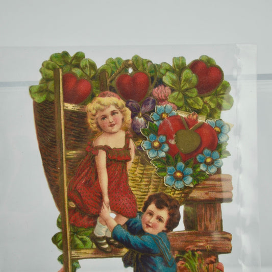 Vintage Valentine's Day Card Cupid Boy Girl Gardening
