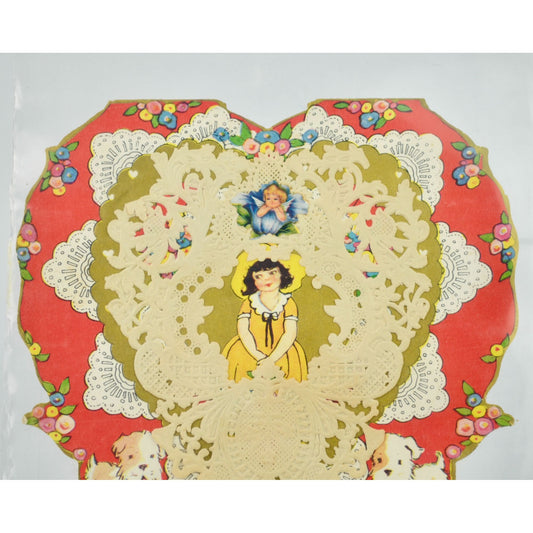 Vintage Valentine's Day Card Lace Detailed Front & Back