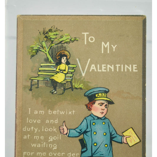 To My Valentine Vintage Card Mailman Lady on Bench