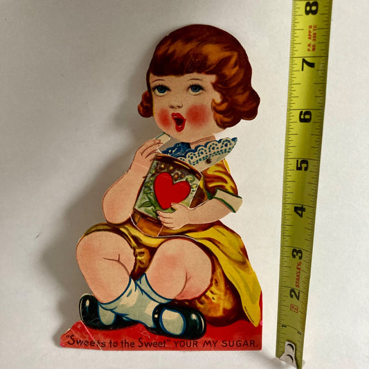 Vintage "Sweets to the Sweet" Valentine Card Mechanical Your My Sugar Girl Gum
