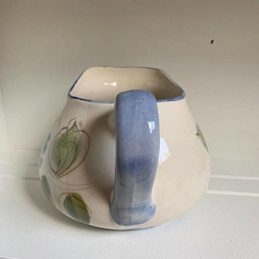 Secia Portugal Pottery Handpainted Blue Green Floral Pitcher Ceramic