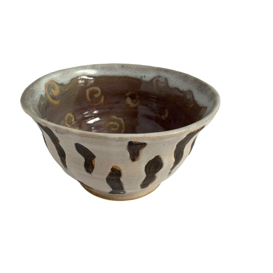 Vintage Handmade Pottery Small Bowl With Blue Birds on Sides