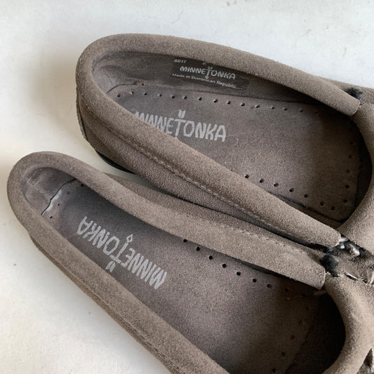 Minnetonka Gray Leather Moccasin Shoes Women's Size 6 Fringe
