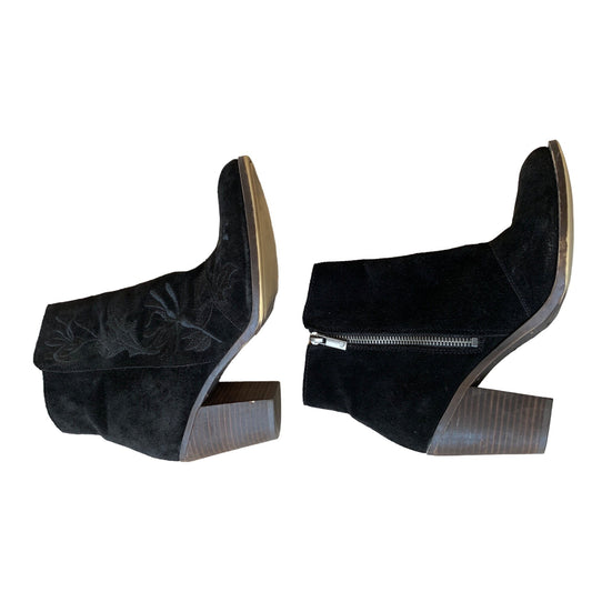 Lucky Brand Elenor2 Black Suede Booties Embroidered Size 7.5 M