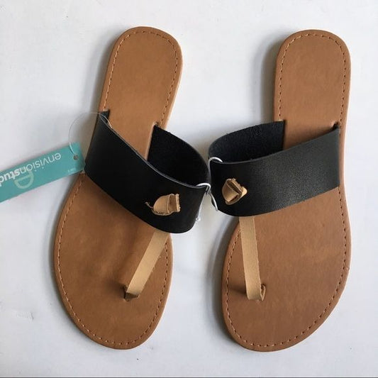 Envision Studio Black T-Strap Sandals New