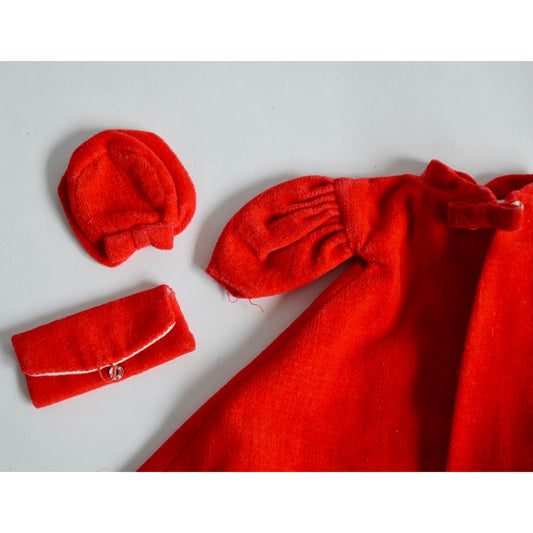 Mattel Barbie Fashion Red Flare Coat Hat Bag Vintage
