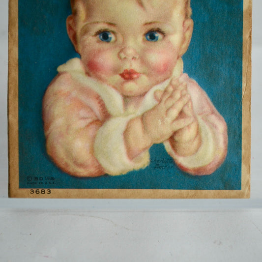Charlotte Becker Now I Lay Me Baby 3D Embossed Cardboard Lithograph Print 3.75 x 3"