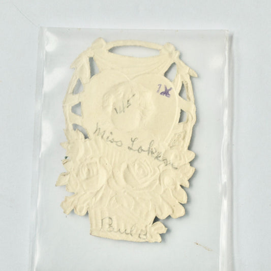 Vintage Valentine Card Lady Basket Flowers True Affection Small
