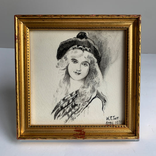 Vintage | 1970 Handpainted Tile Scot Lassie Chicago Ceramic Hobby Show 2nd Place