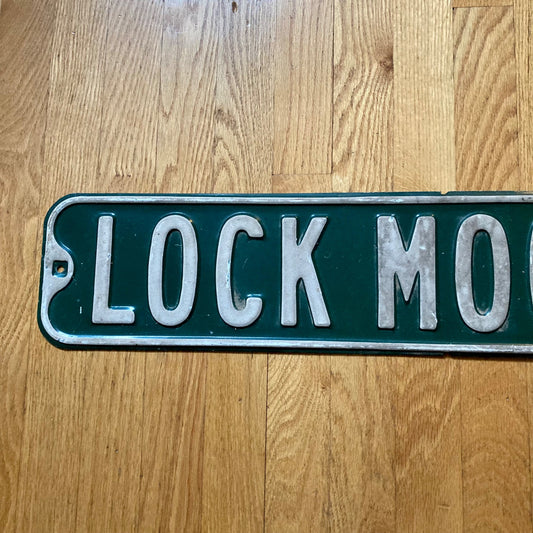 Vintage Street Sign LOCK MOOR DRIVE Green/White Embossed Letters 36"