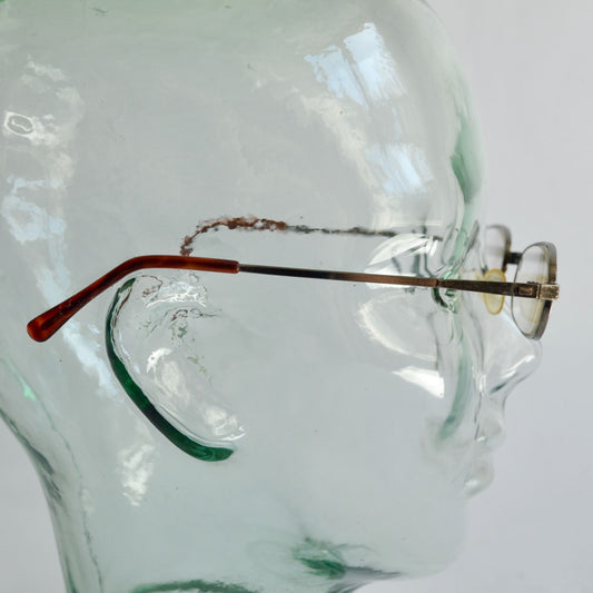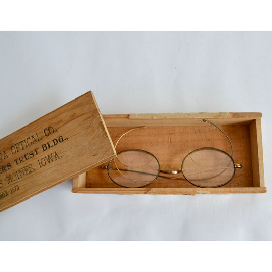 Vintage Wire Rim Eyeglasses Gold Filled 10K Antique Bifocal w/ Wood Case