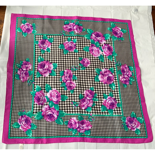 Glentex Italy Vintage Scarf Gingham Floral