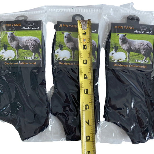 Pack of 6 Pairs Black Ankle Socks RABBIT WOOL Blend NEW