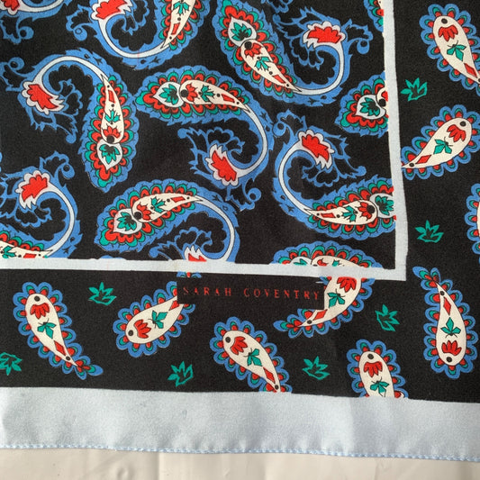 Sarah Coventry Vintage Scarf Paisley Black Blue Red
