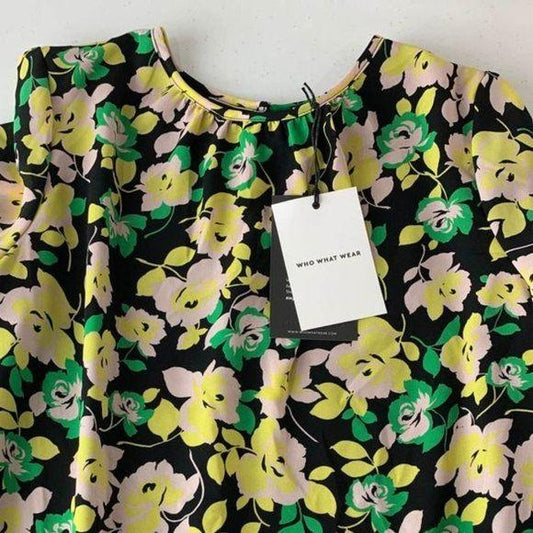 Who What Wear Electric Floral Dress Black Green Yellow Floral New