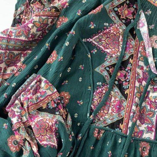 A New Day Floral Print Tiered Dress New Green Yellow Small