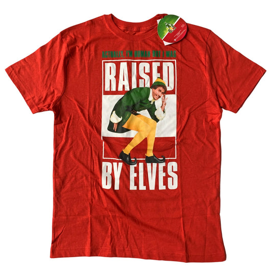 Elf Movie Raised by Elves Red Christmas Shirt NEW