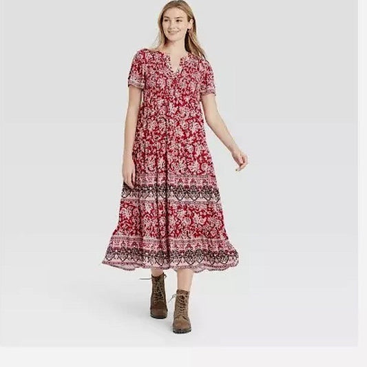 Knox Rose Red Paisley Short Sleeve Dress Medium New