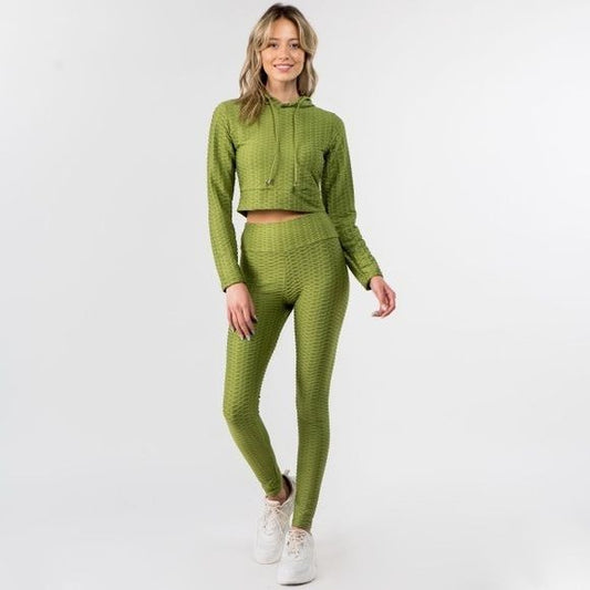 Honey-Comb Activewear Set Cropped Hoodie & Brazilian Butt Lifting Leggings