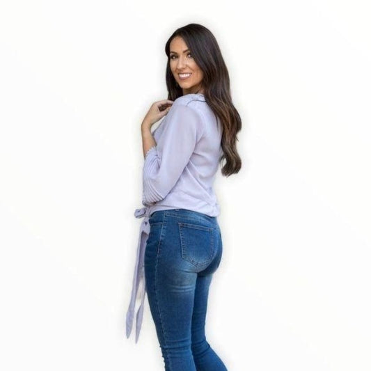 New Lilac 3/4 Sleeve Tie Waist Top Blouse Shirt