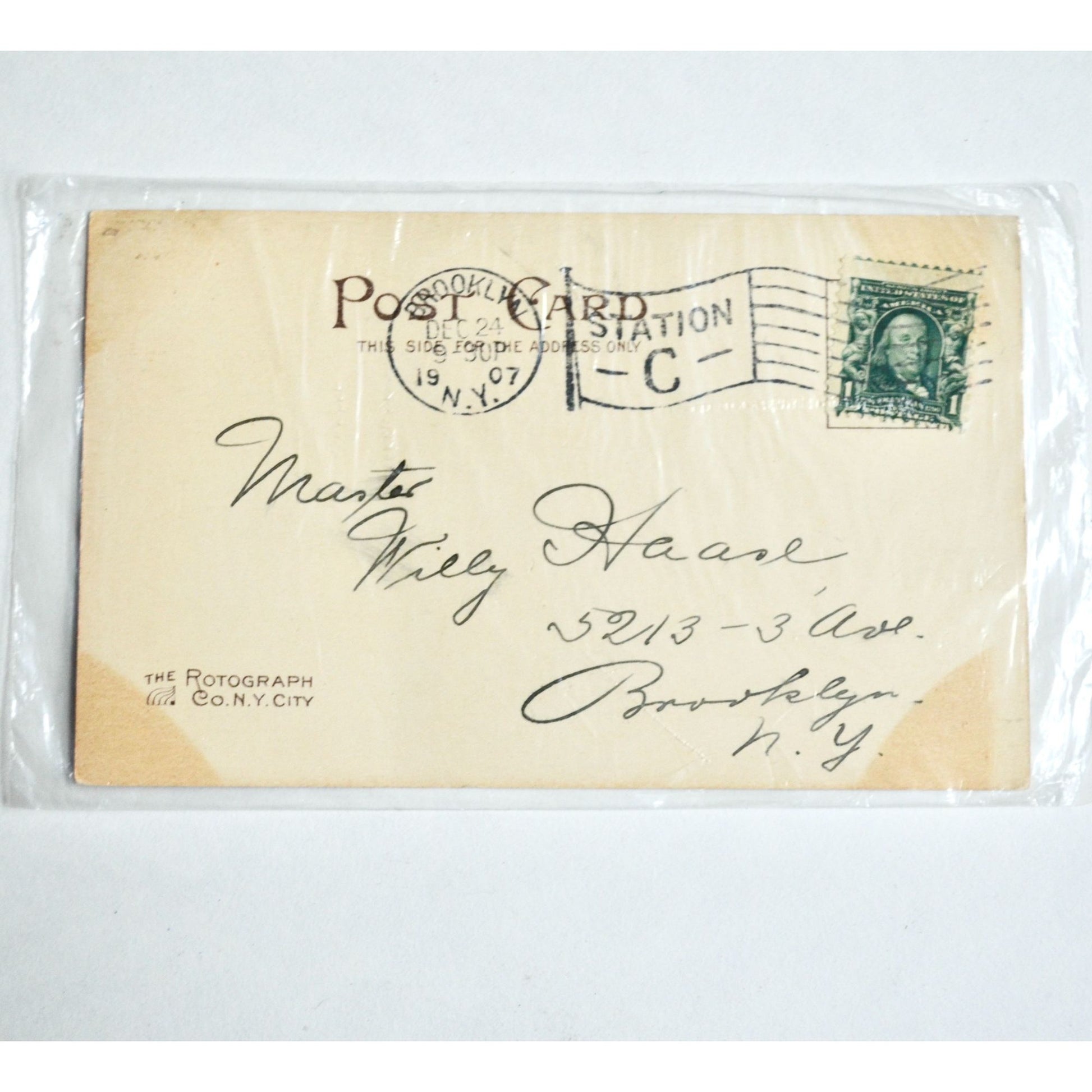 Good condition for age. Stored in protective sleeve as shown. Measures approximately 5.5 x 3.5."