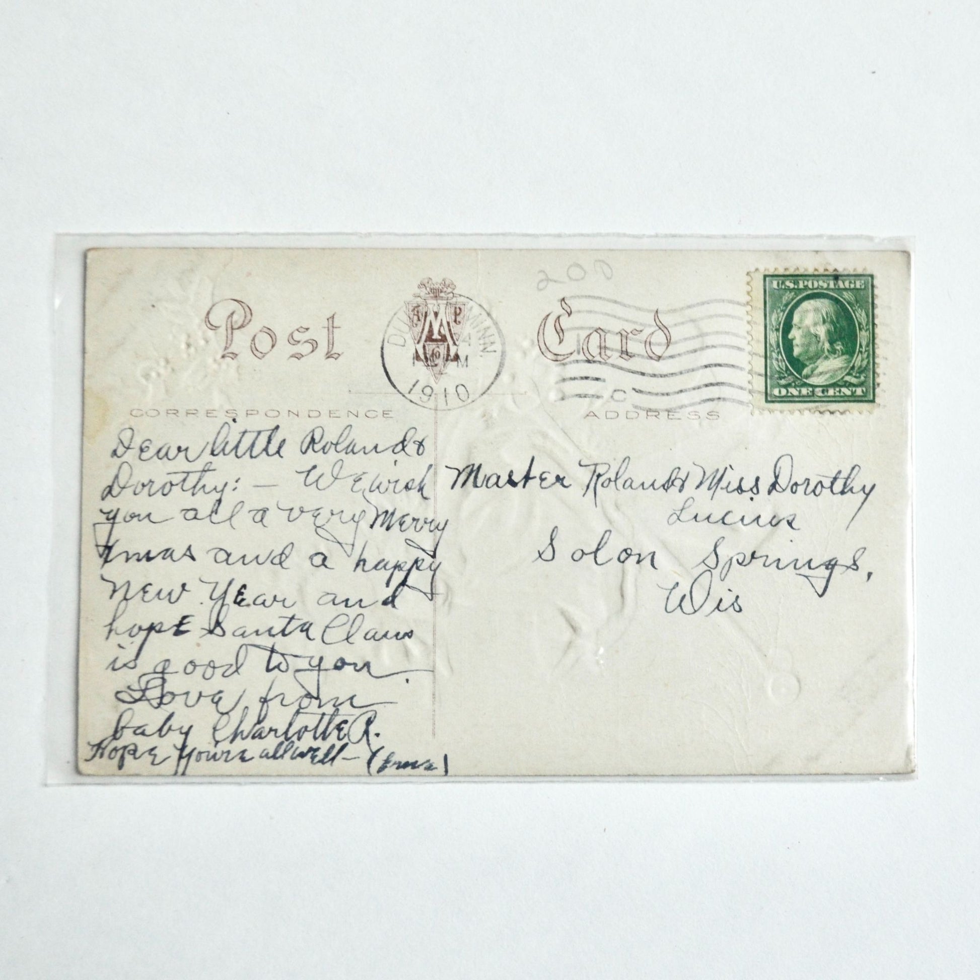 Used condition. In protective plastic. Measures 5.5 x 3.5."