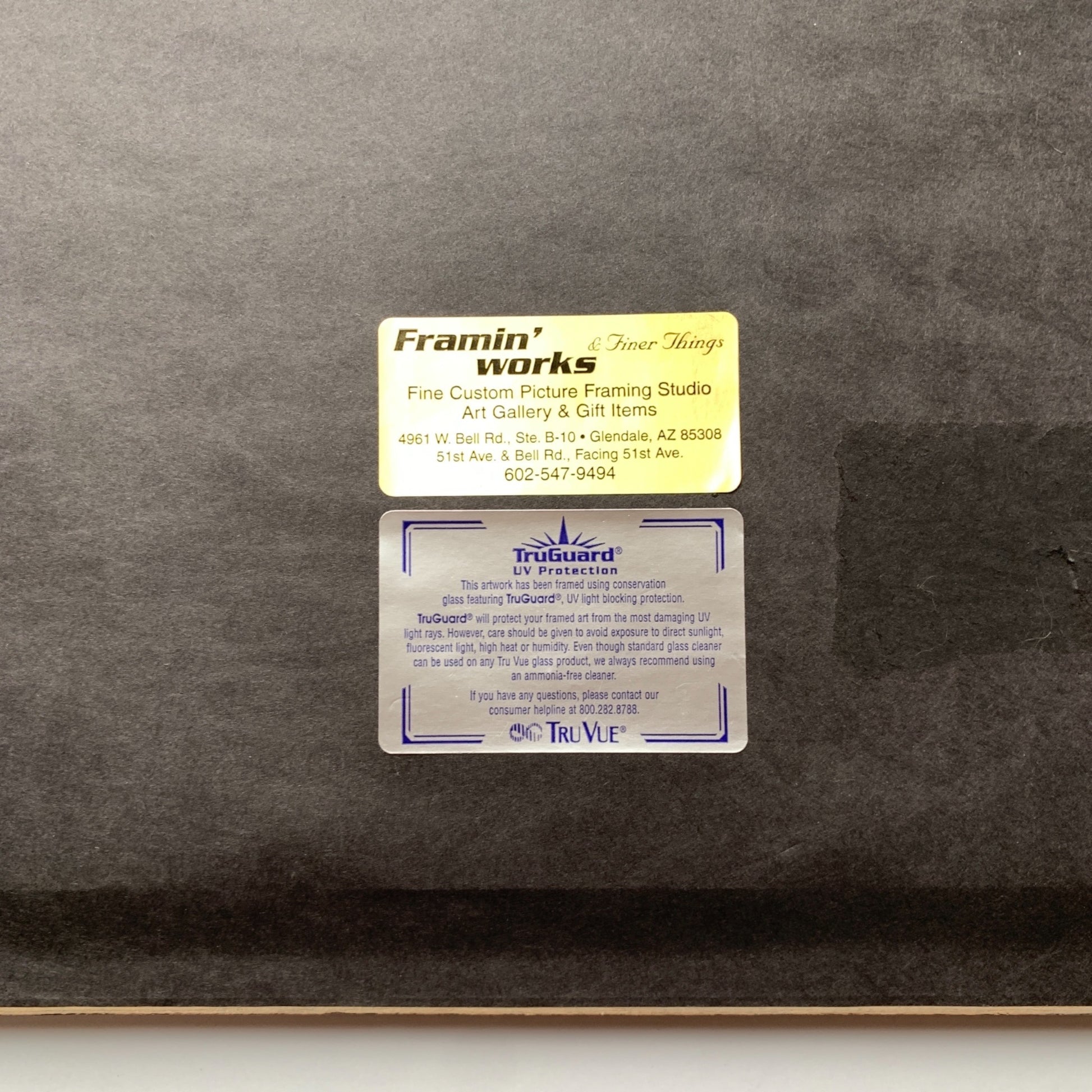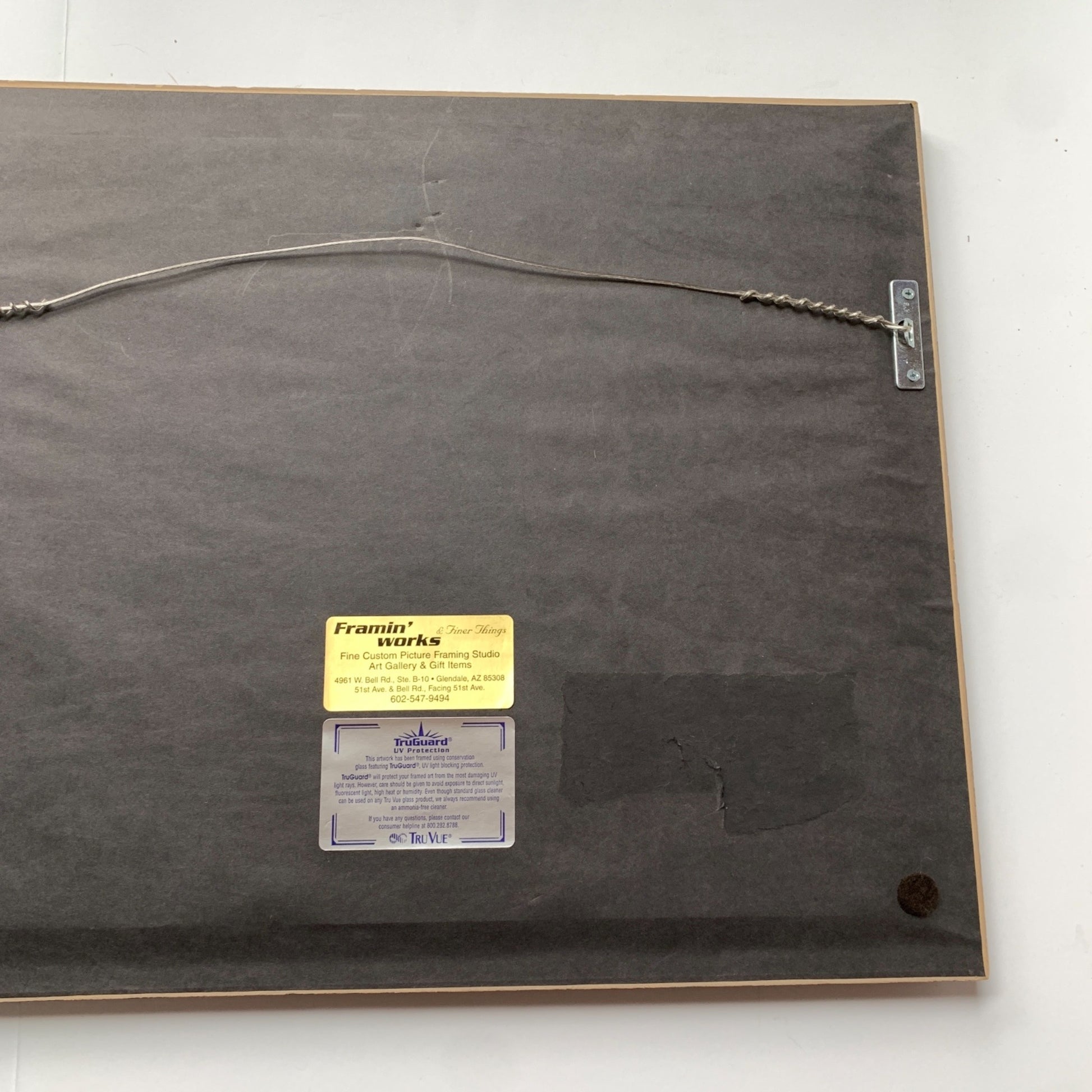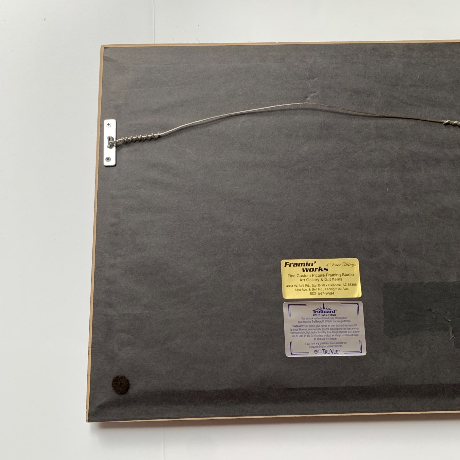 Extremely well made. Very clean. One tiny nick in the top of the frame (see photo). Frame measures approximately 18 x 15.25." Professionally matted and framed.