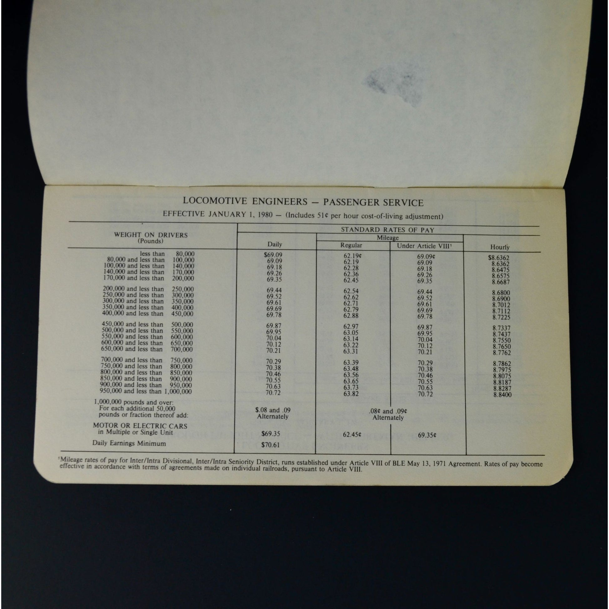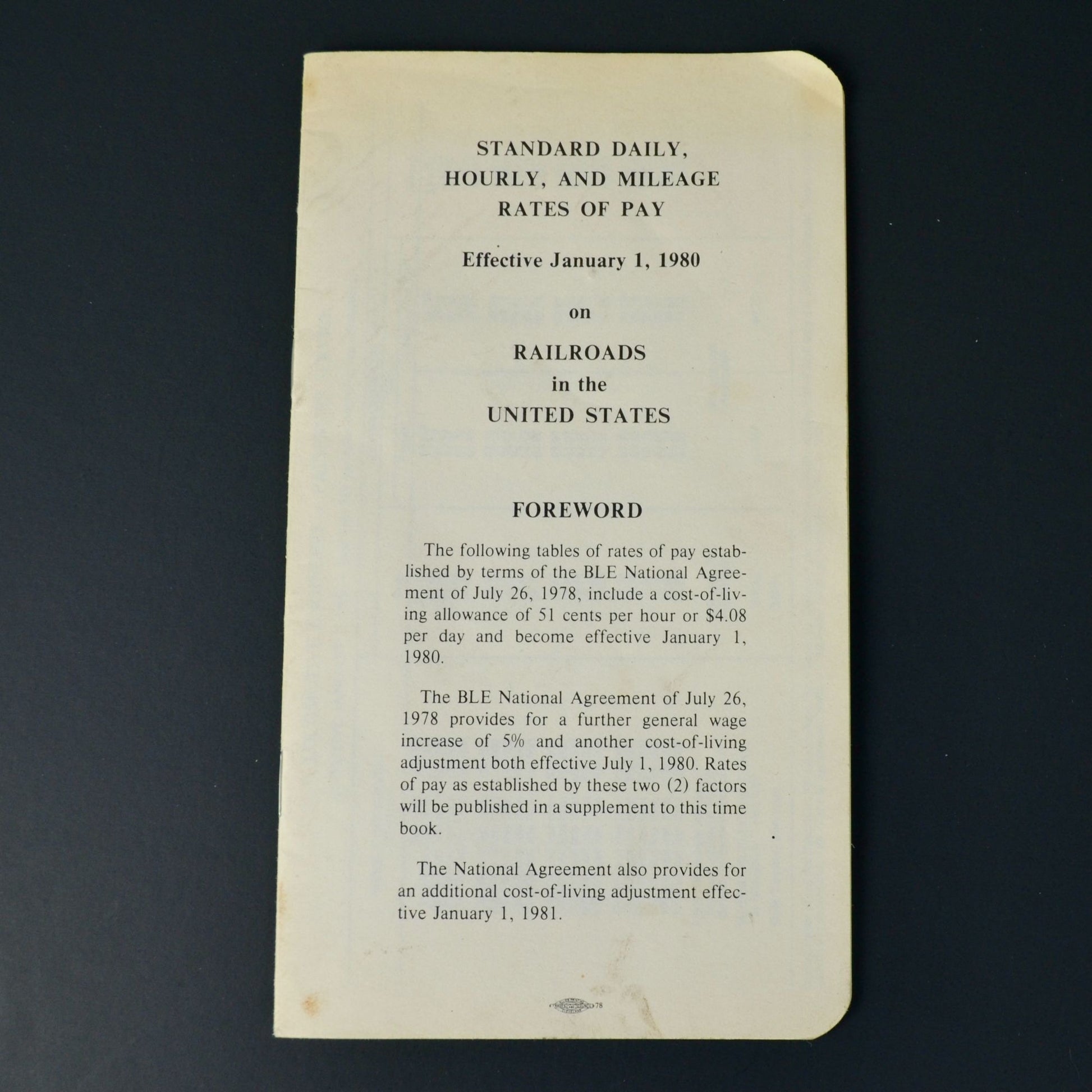1980 Standard Daily Hourly Mileage Rates of Pay Railroads United States Vintage Booklet