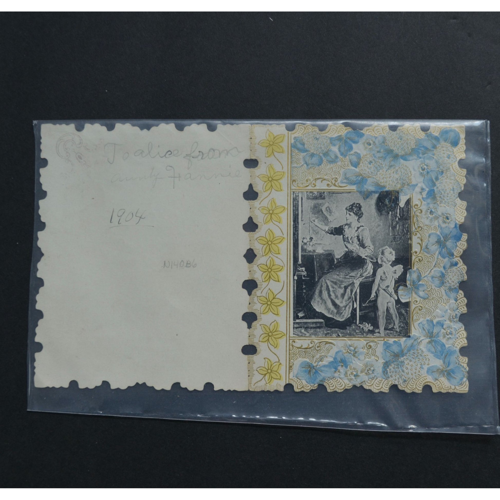 Antique 1904 Valentine's Day Card Woman Child Cherub Painting