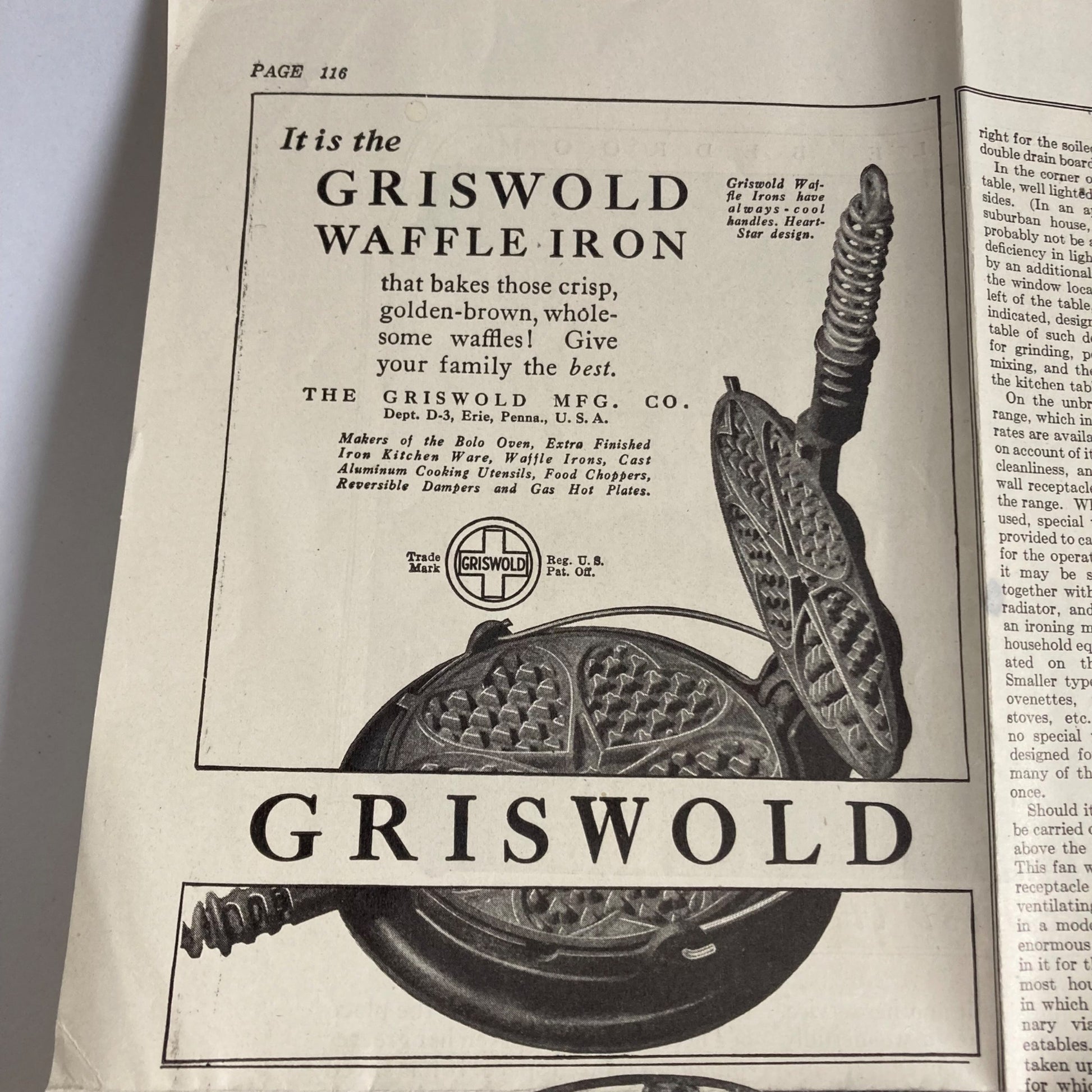 Antique 1924 Griswold Waffle Iron Newspaper Advertisement Ad Vintage