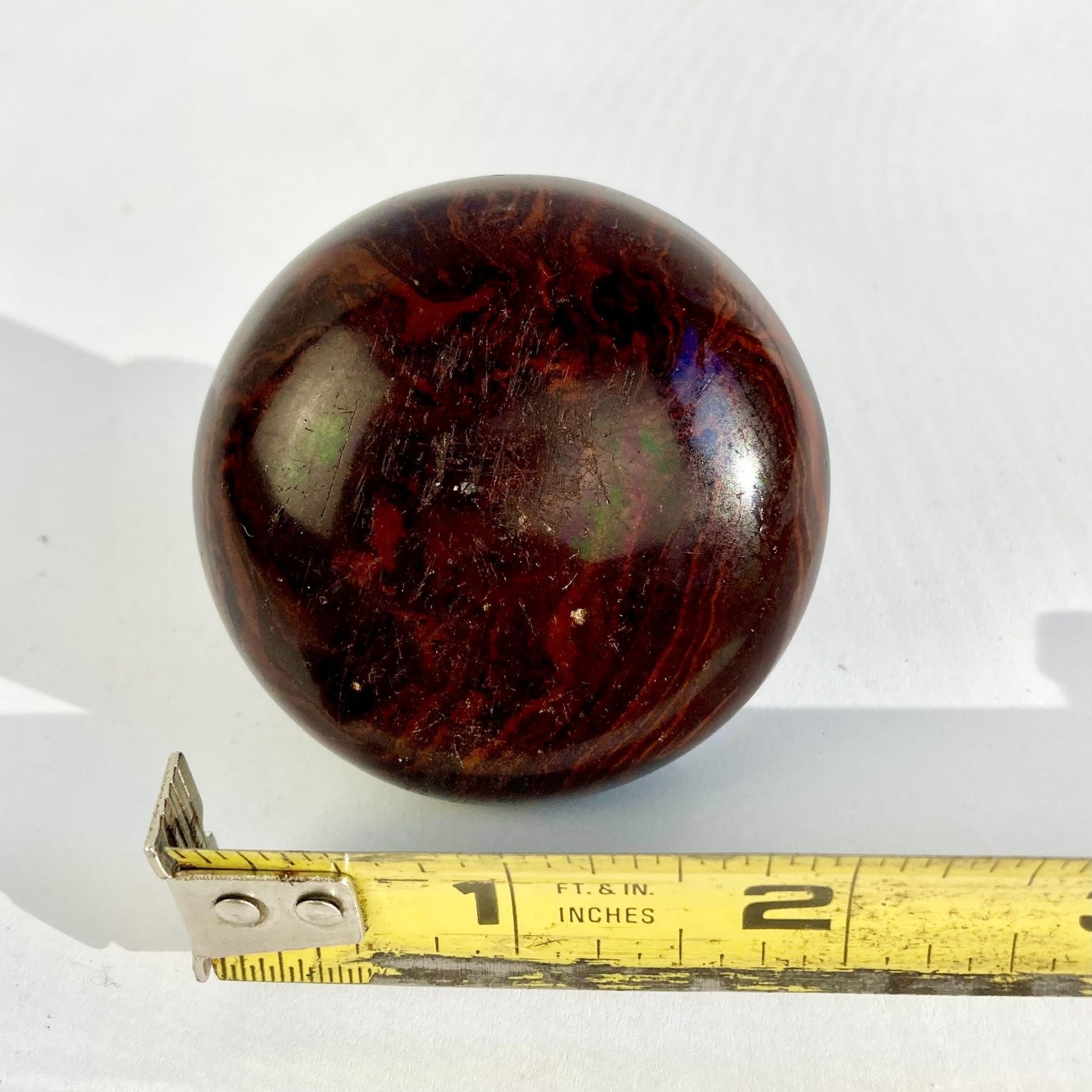 Door knob shows some light wear/aging (scratches, light surface rust, etc.) but in overall good condition. Measures approximately 2.25 inches in diameter.