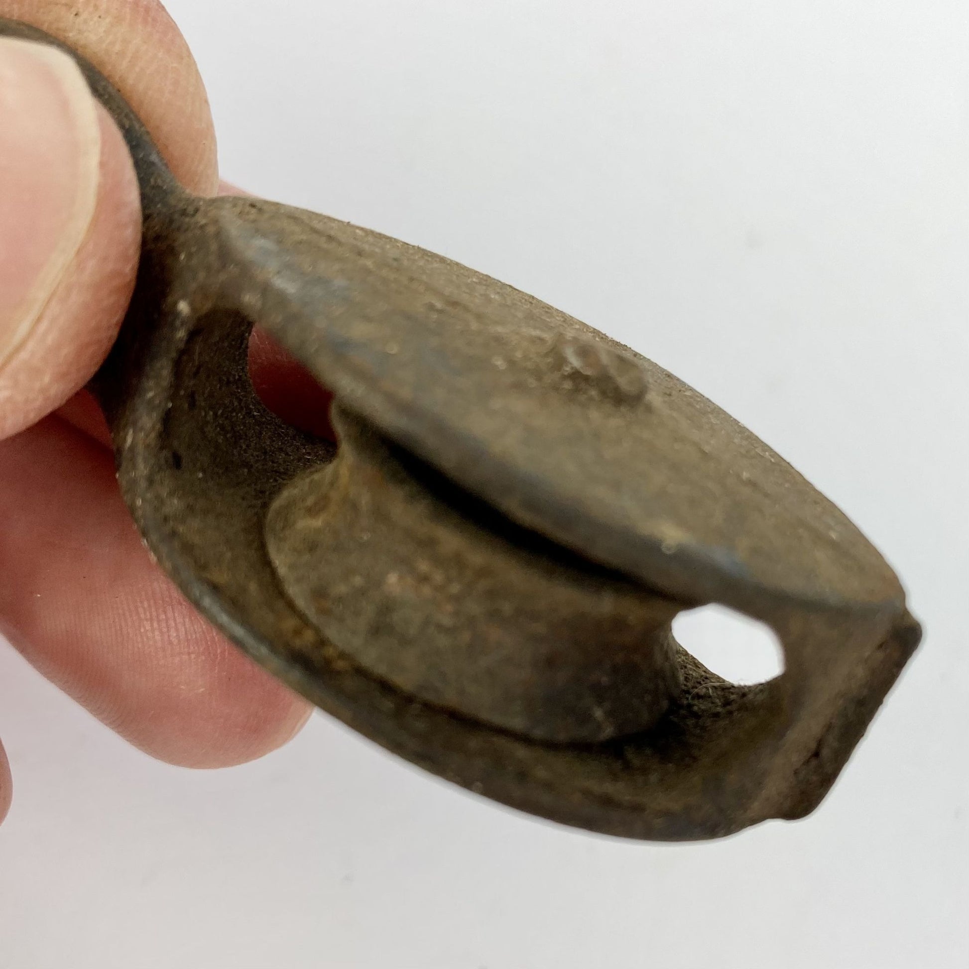 Pulley has surface rust but the wheel turns freely. Entire piece measures 2.25 inches long.