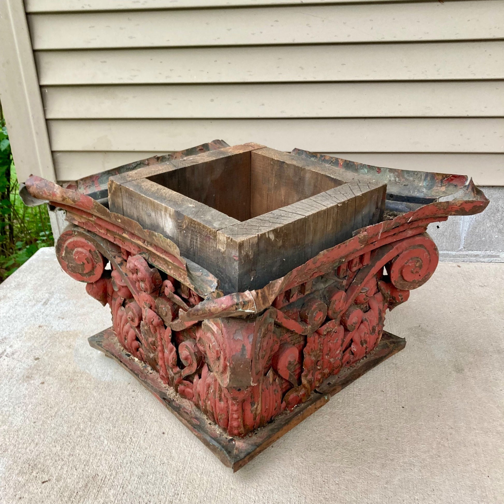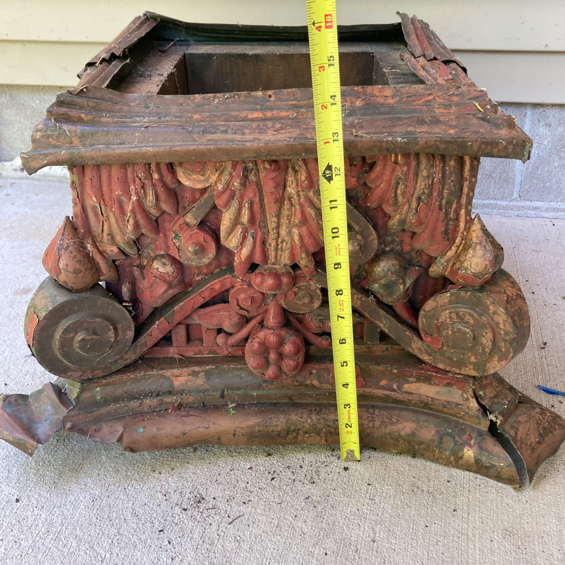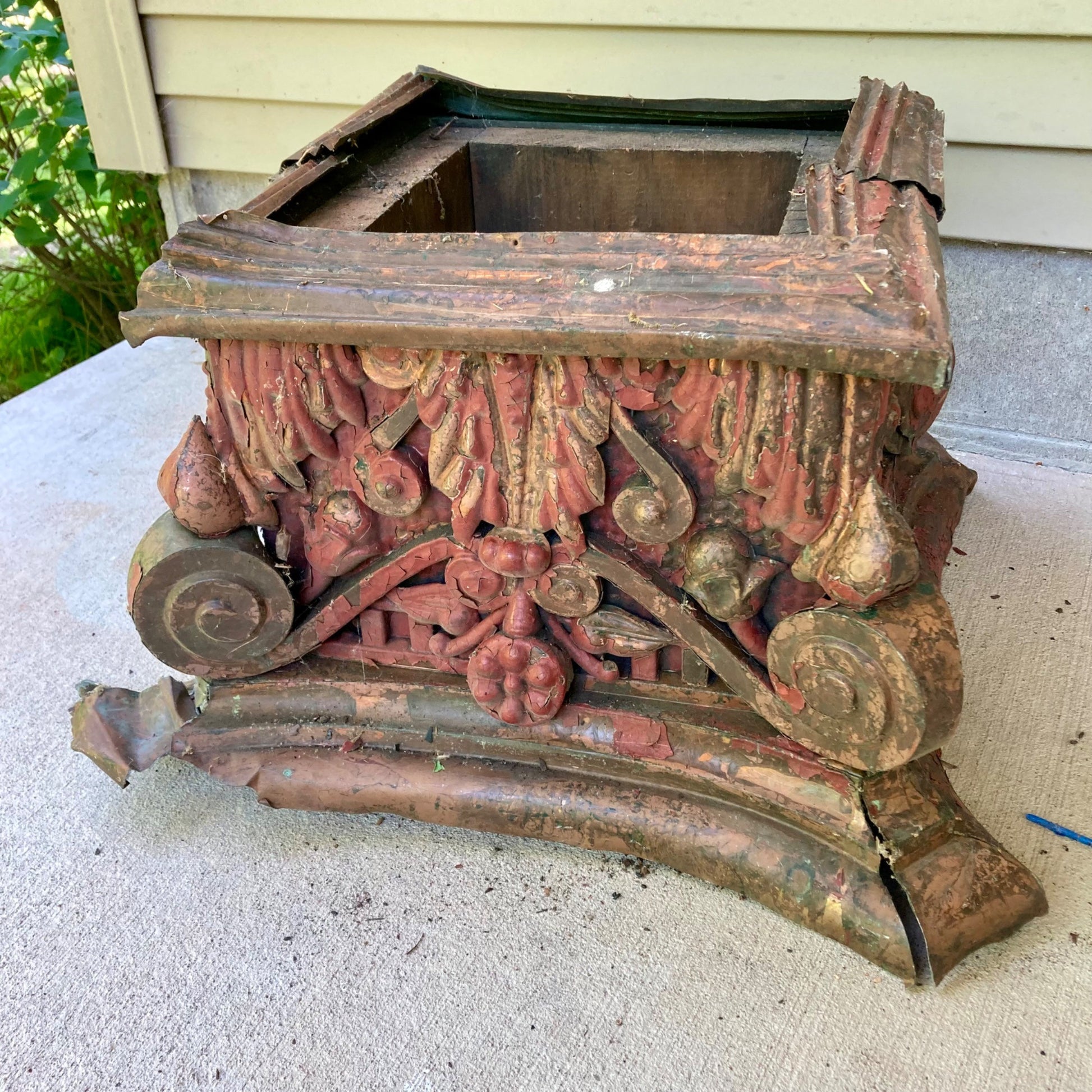 I purchased this from someone who salvaged it from a building in Minneapolis, MN. The metal parts are made of copper. There is some damage to it to some extent. I'm not sure what it originally looked like or what part of the building it was on, but looks to be some type of column base. There are a couple of the embossed pieces that broke off that I will include (see last pic). Sold as-is for parts or repair.