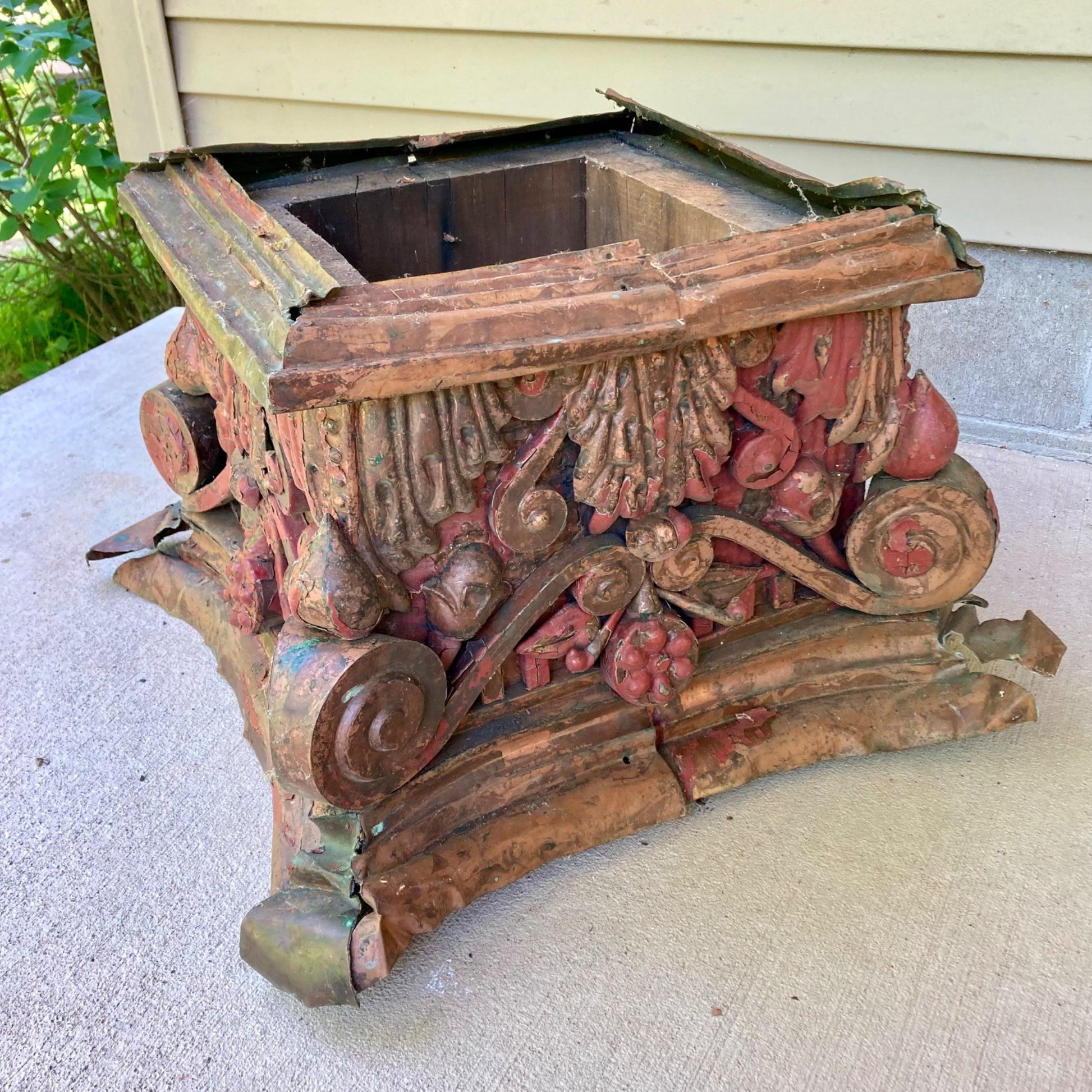 Antique Copper Architectural Salvage Column Base Pillar Embossed Minneapolis