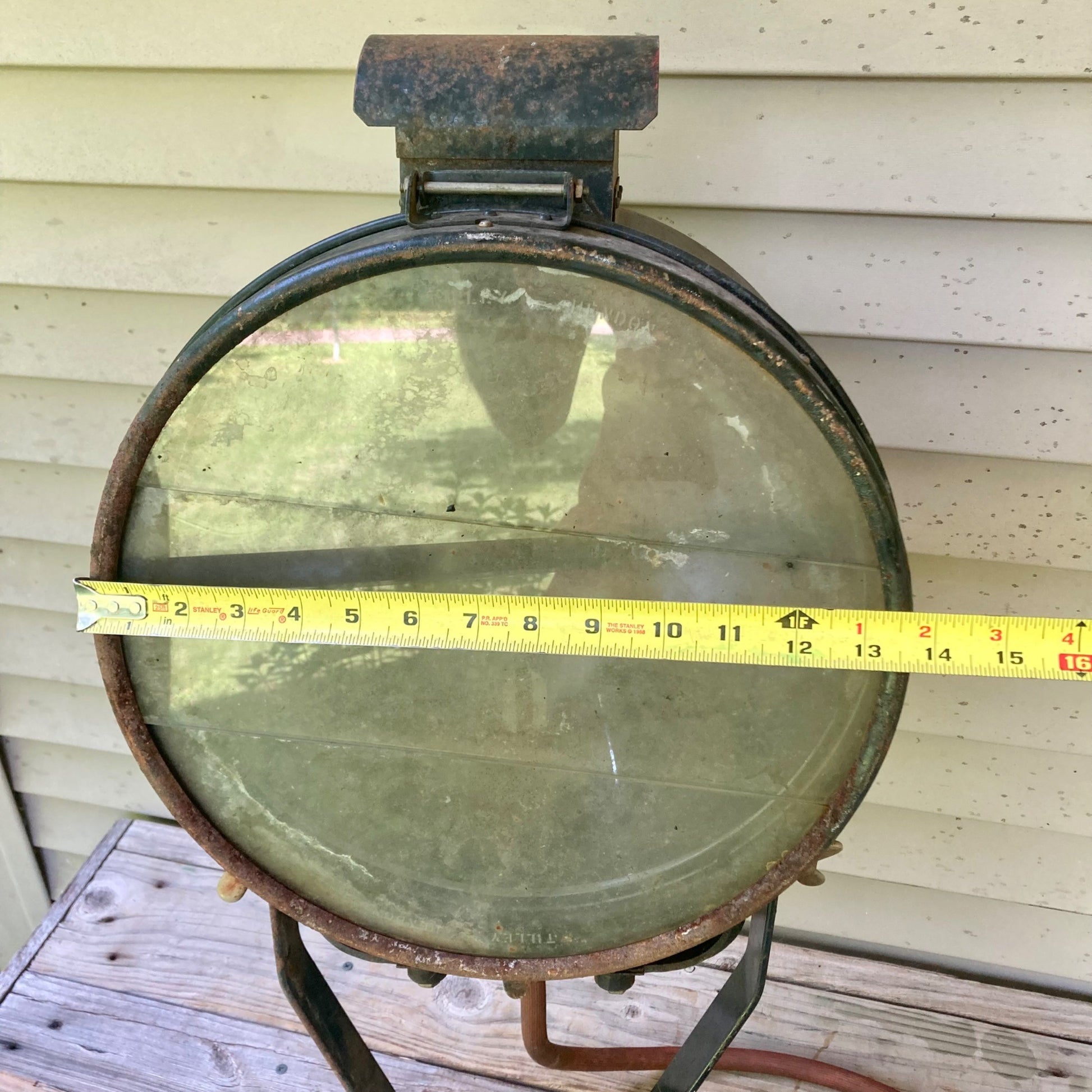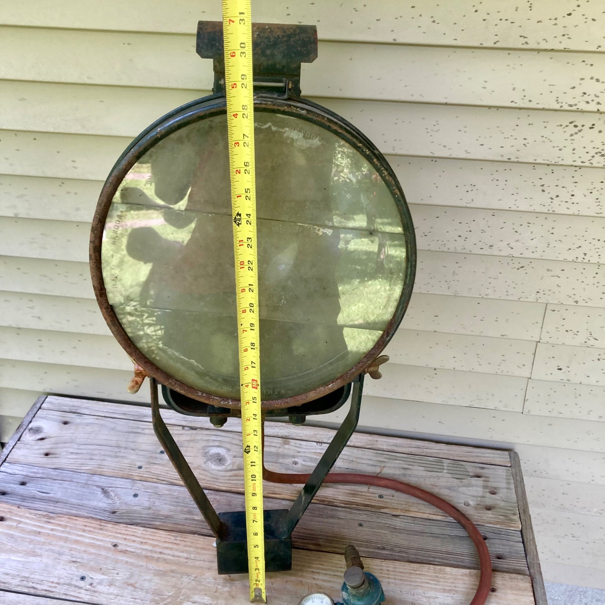 I purchased this in Duluth, MN. Possibly came from a ship being a port city, but unverified. Flood light shows normal wear and aging (has some surface rust). No cracks in the glass. Light is untested. Sold as-is. Cool, hard to find floodlight!