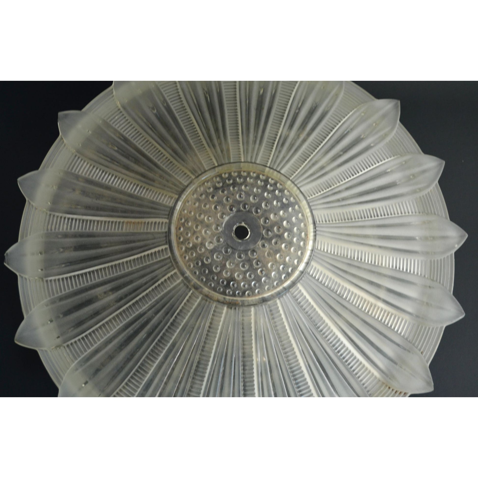 Art Deco Sunflower Glass Ceiling Shade Vintage White Frosted 14" Restoration