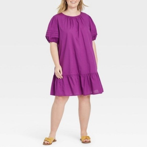 Ava & Viv Pleated Puff Sleeve Dress Purple New 3X