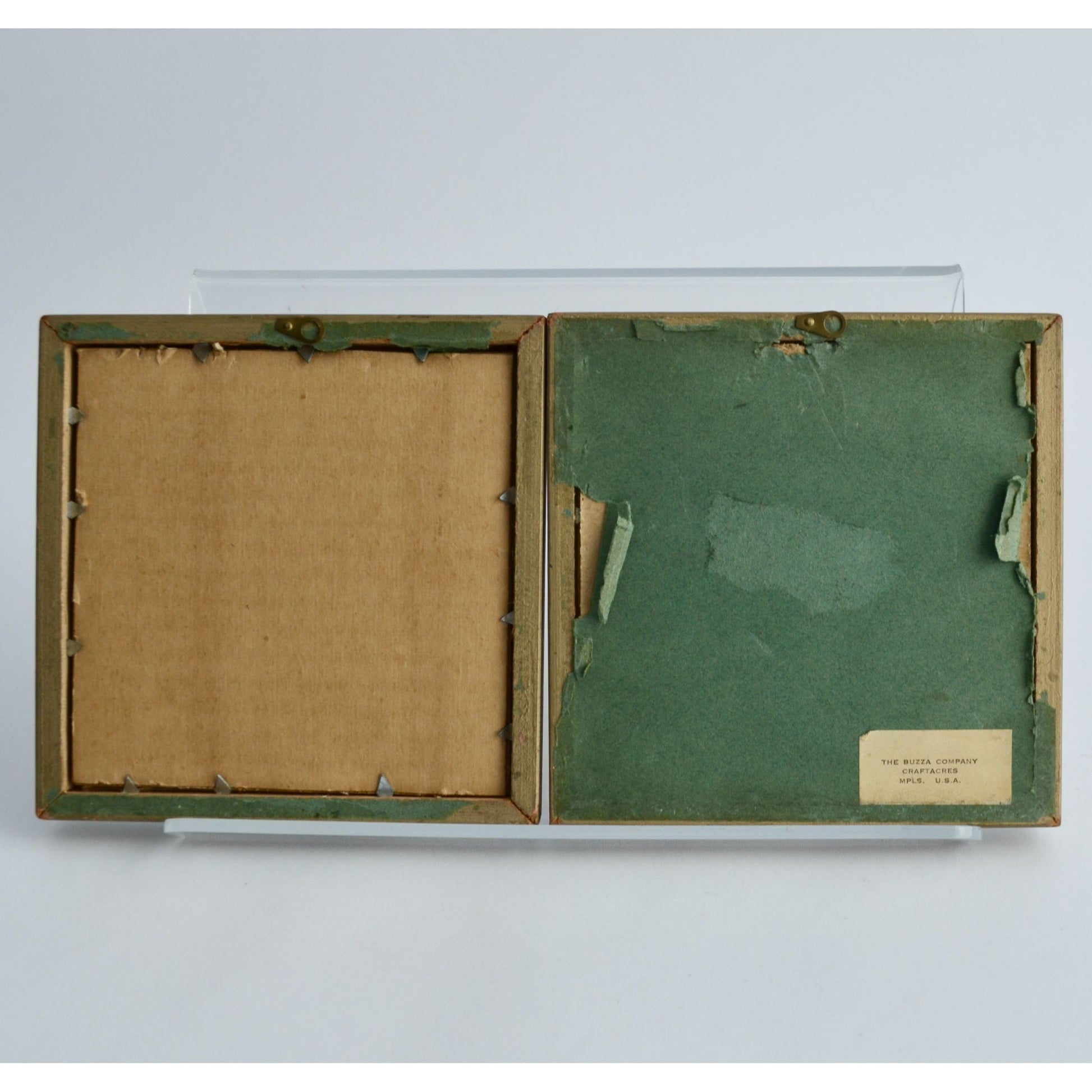 Good condition. One image is missing the green backing paper on the backside. Frames measure 4.5 x 4.5."