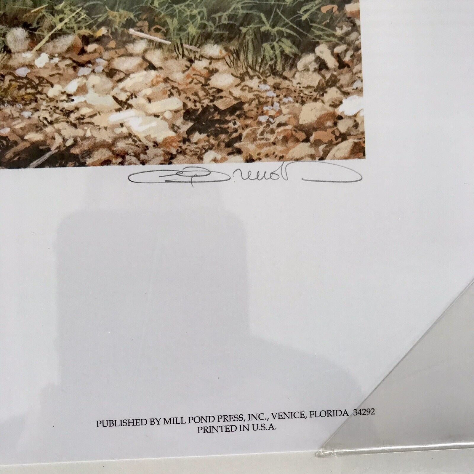 Print is new old stock, sealed in plastic (plastic does have one small rip on the right side). Print is hand signed and numbered by the artist. Measures 20 x 23 inches. Very cool old piece!