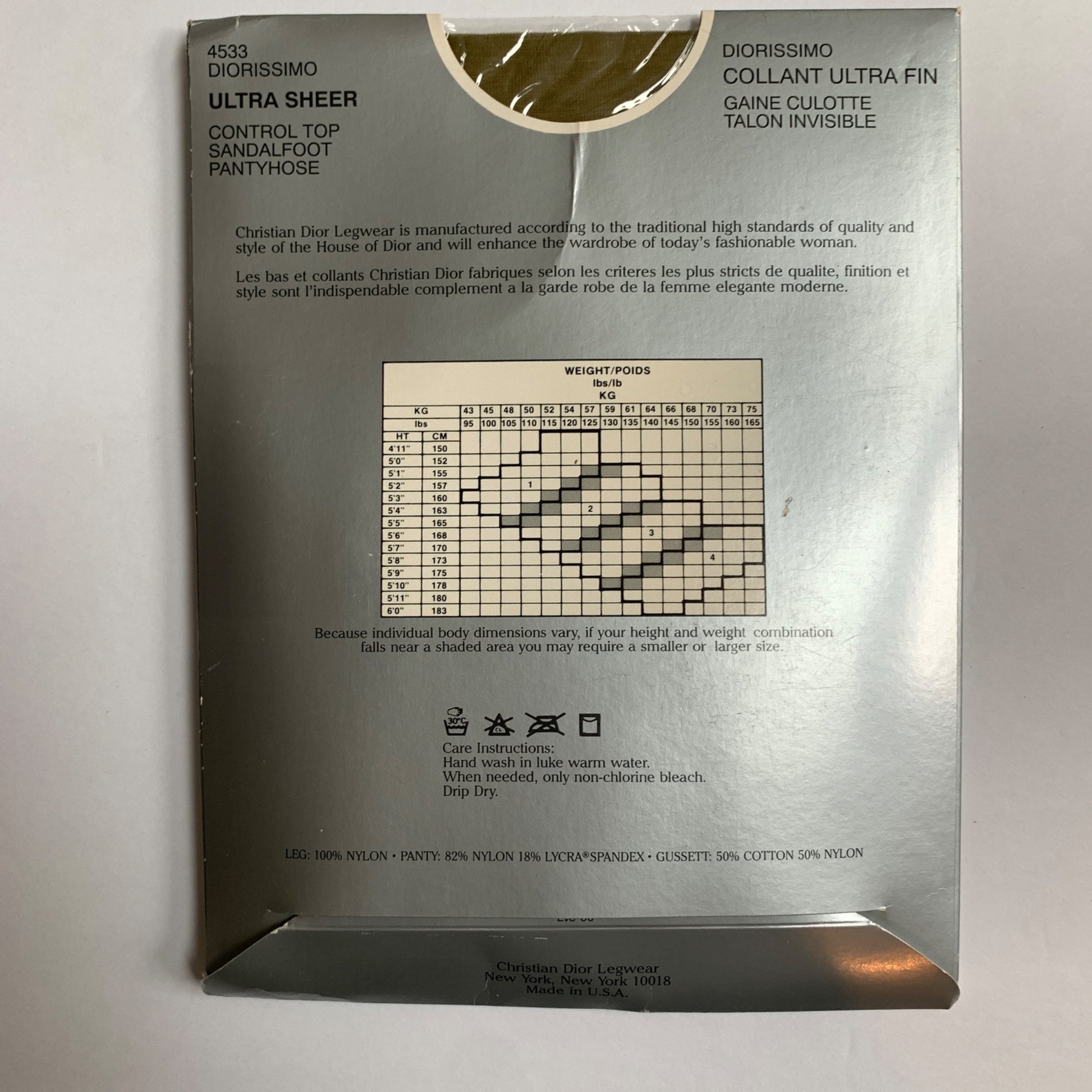 Christian Dior Vintage Diorissimo Ultra Sheer Pantyhose Sandalfoot Control Top 4533 Olive