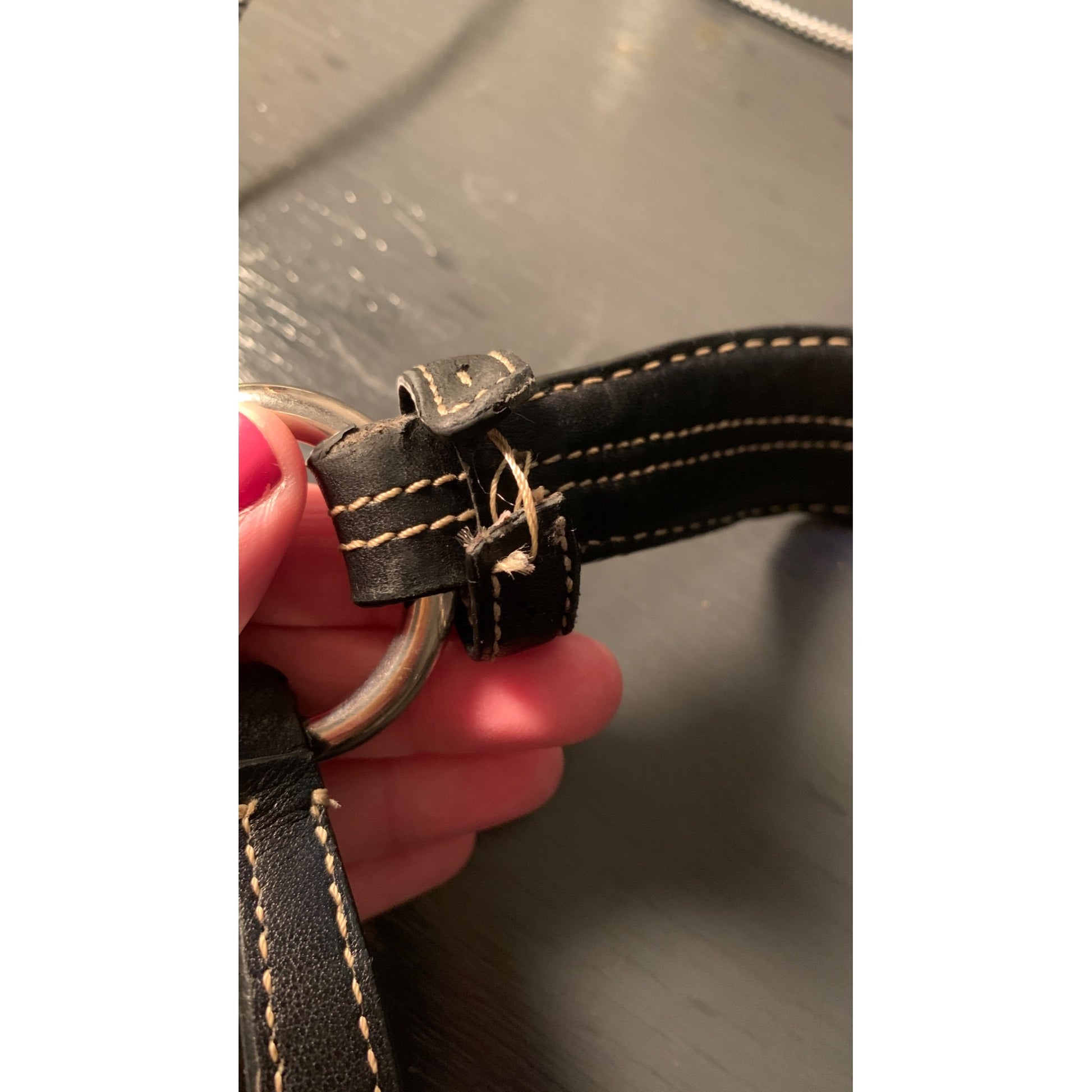 Please read: the main flap magnet has broken off (missing) so it does not clasp shut. There is also a decorative leather piece that wraps around the handle that is literally hanging by a thread and would need repair as well. Other than that, the bag is in pretty good condition considering it's age. Minor discoloration that I did not attempt to clean. Nickel/silver hardware. Black leather accents and handle.