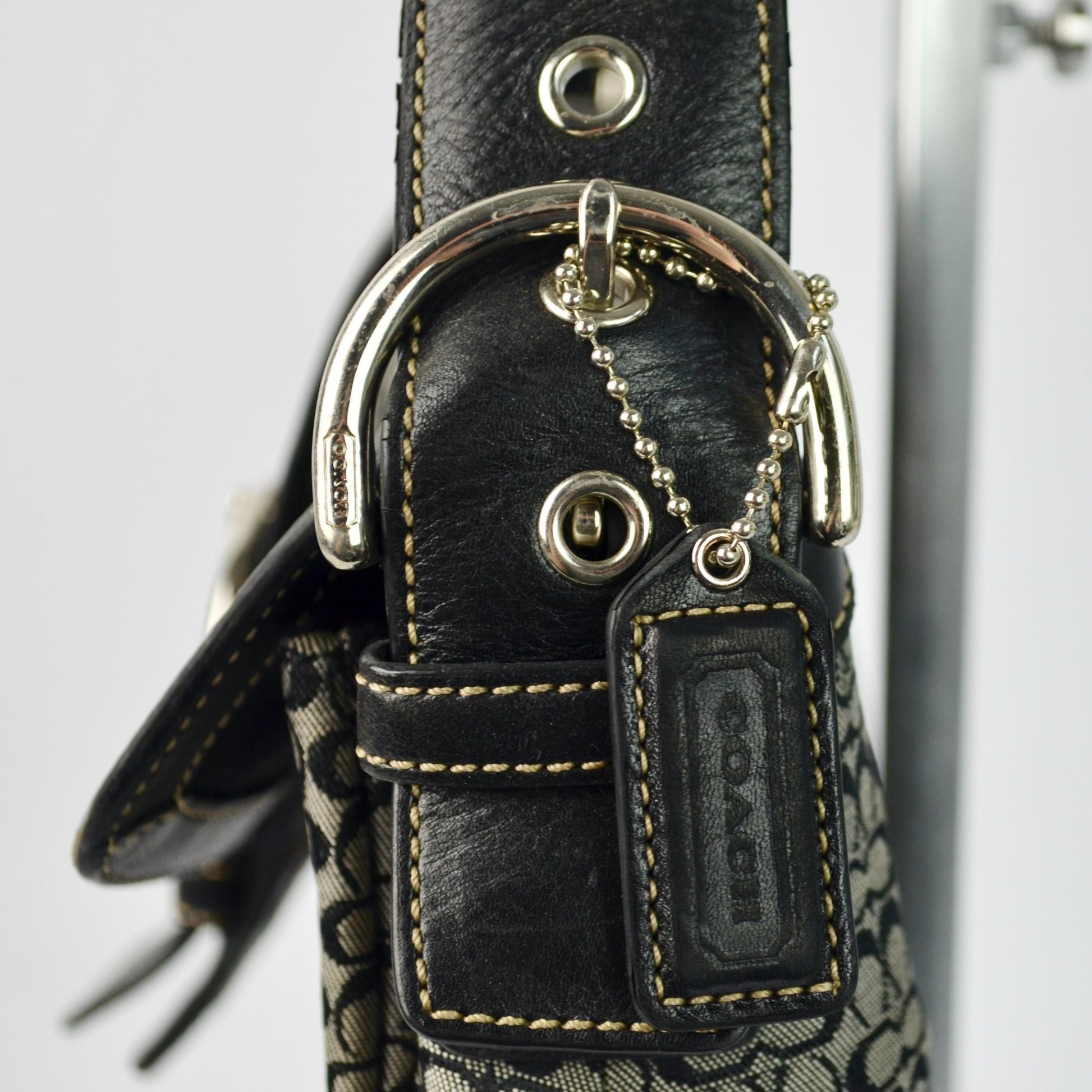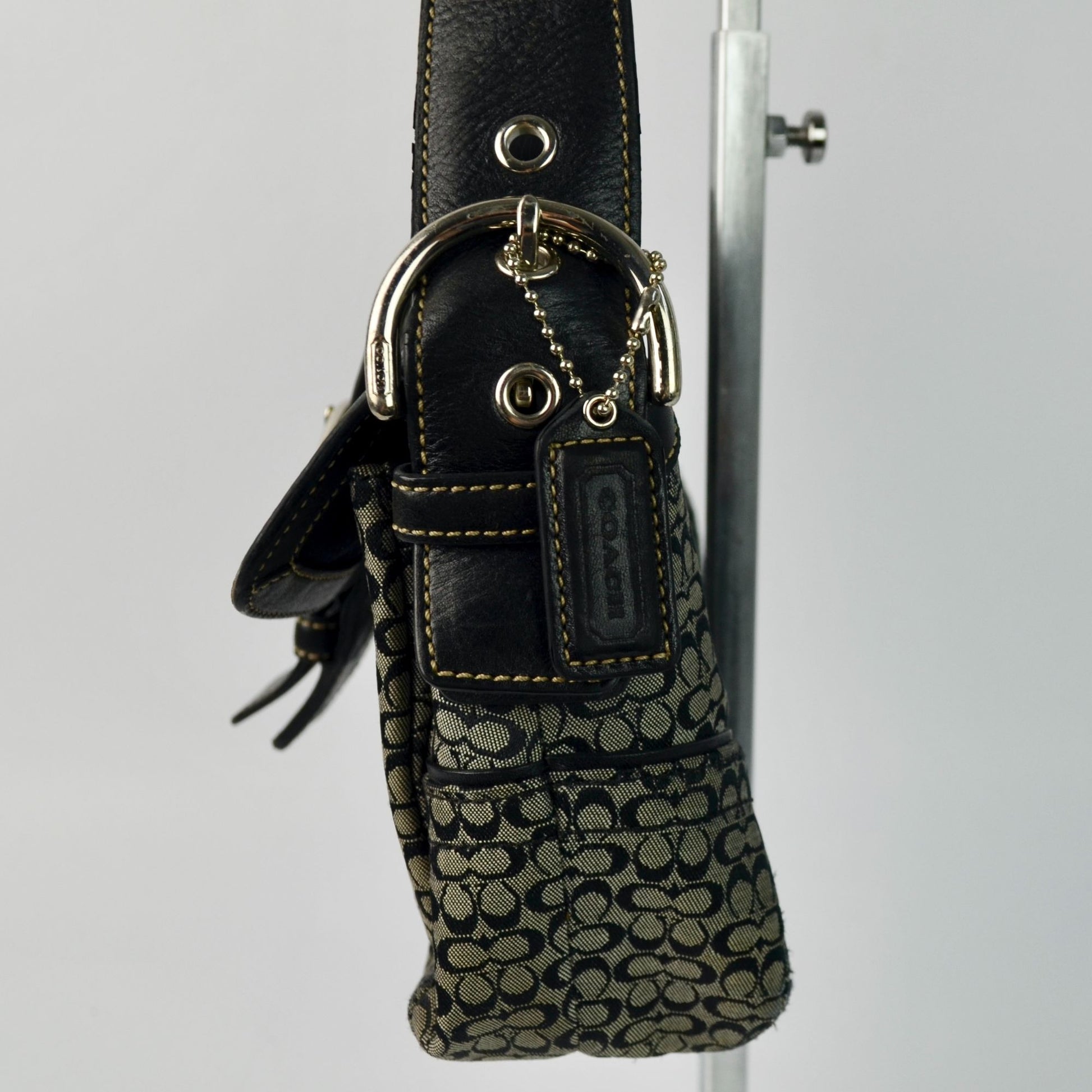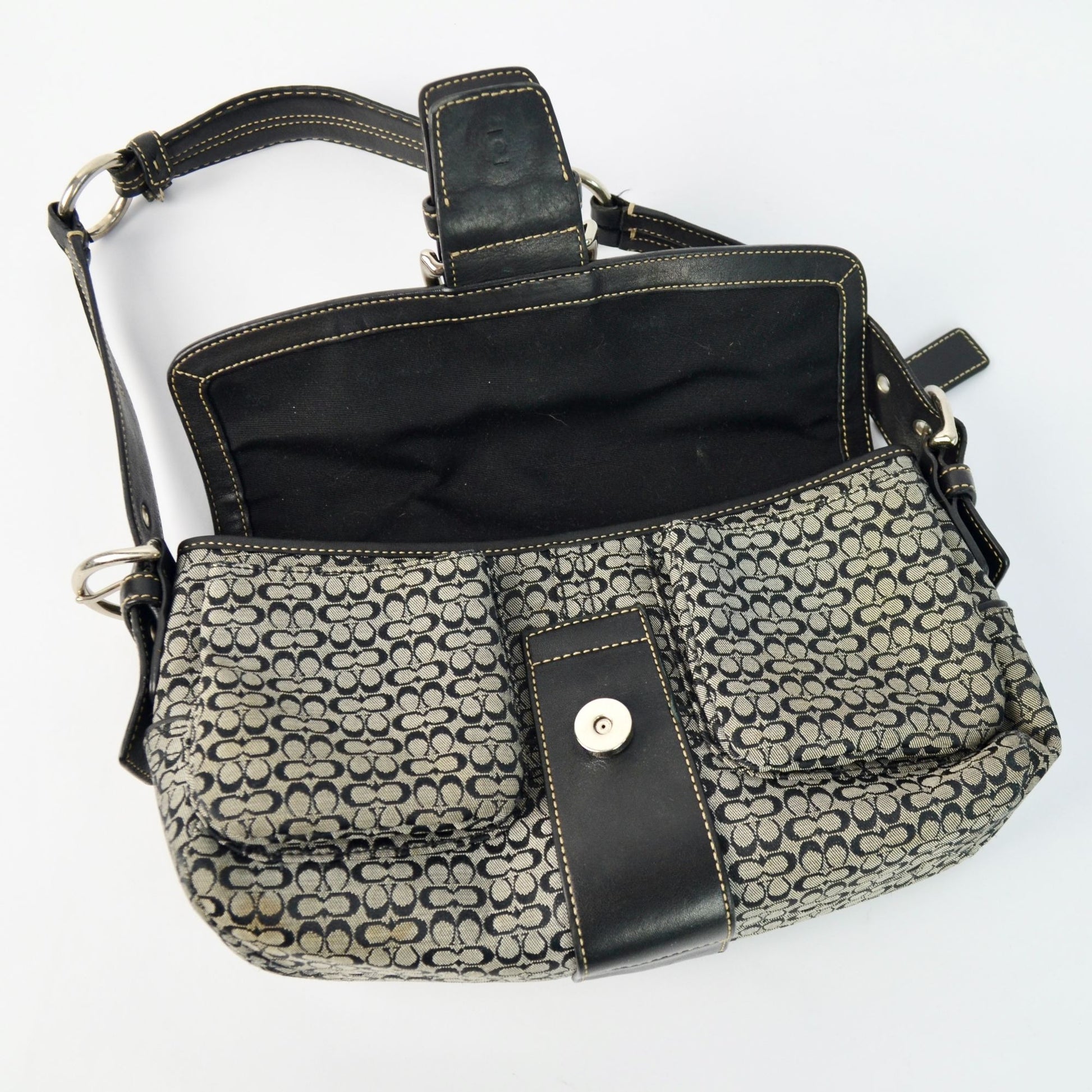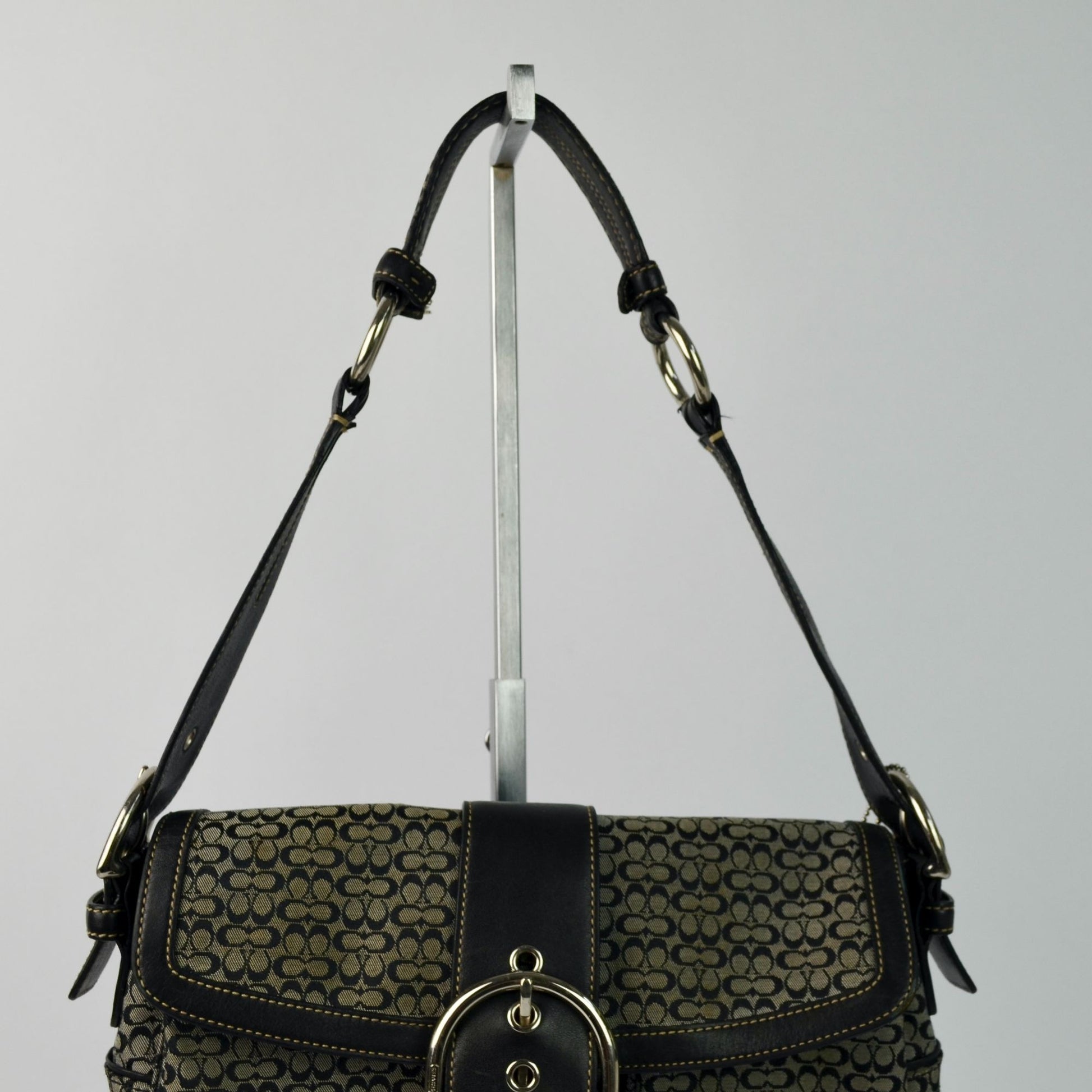 COACH 1463 SOHO Shoulder Bag Hand Bag Canvas Leather Signature Black HOBO Y2K