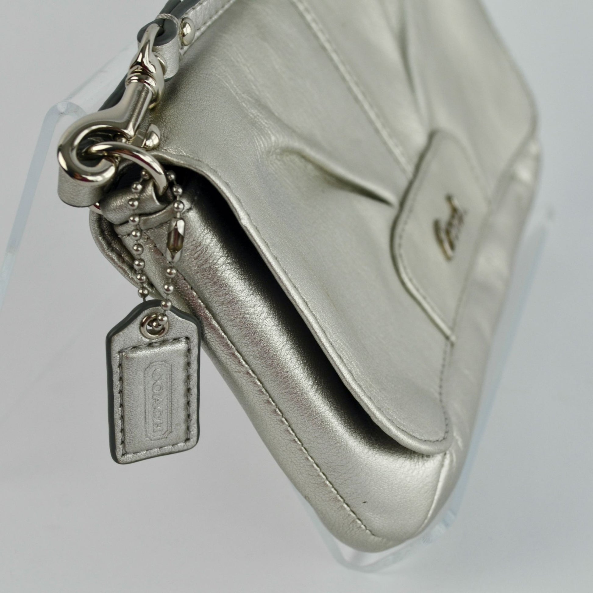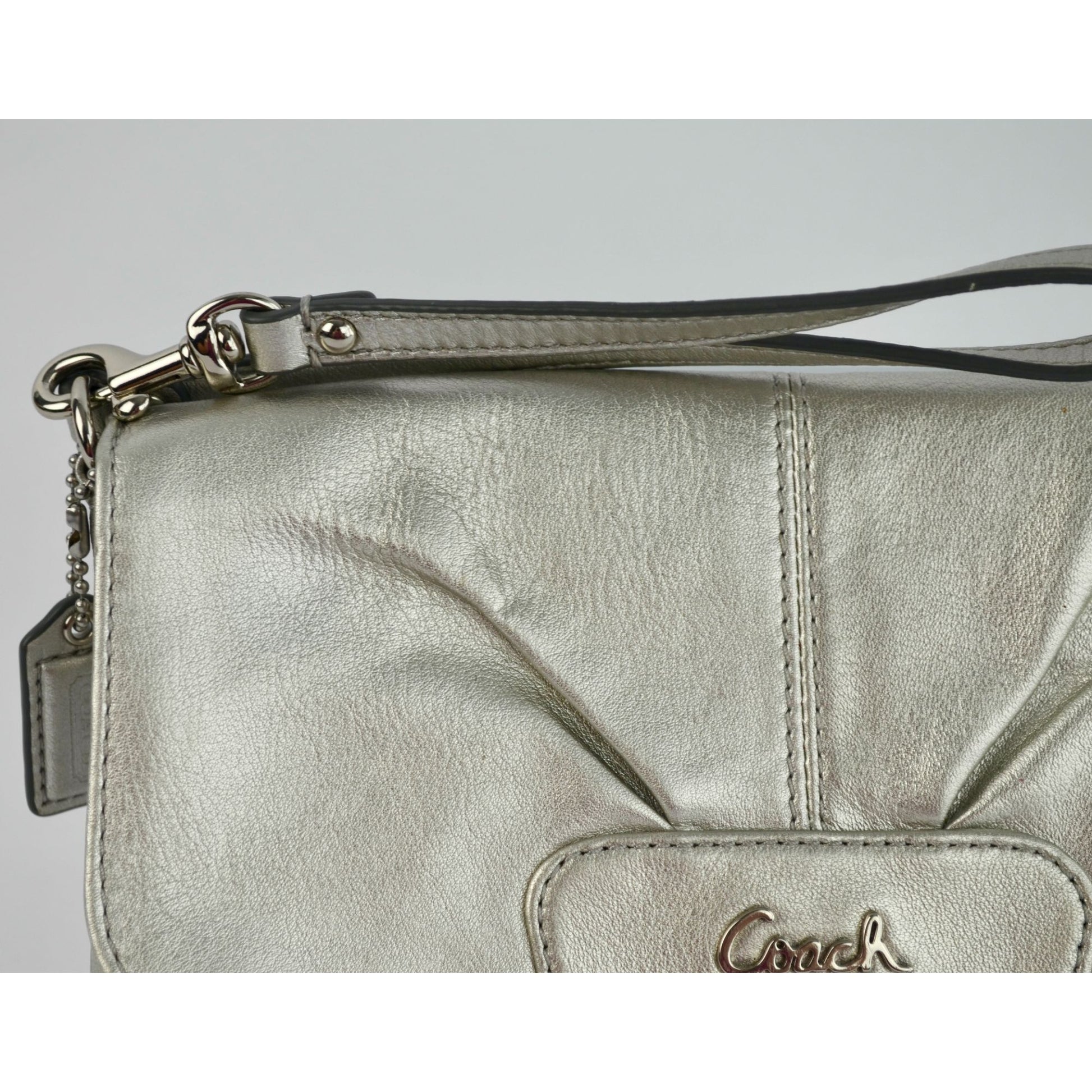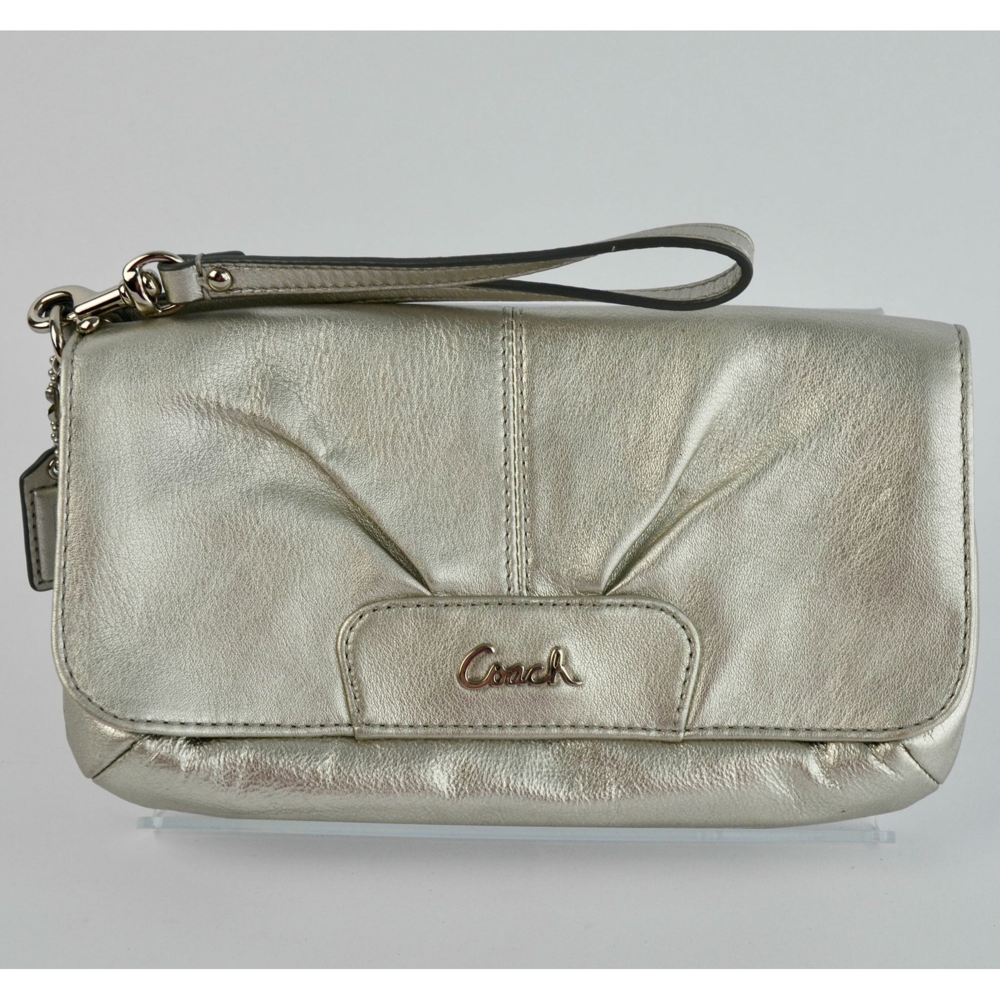 Coach Ashley Metallic Silver Leather Wristlet WITH HANGTAG