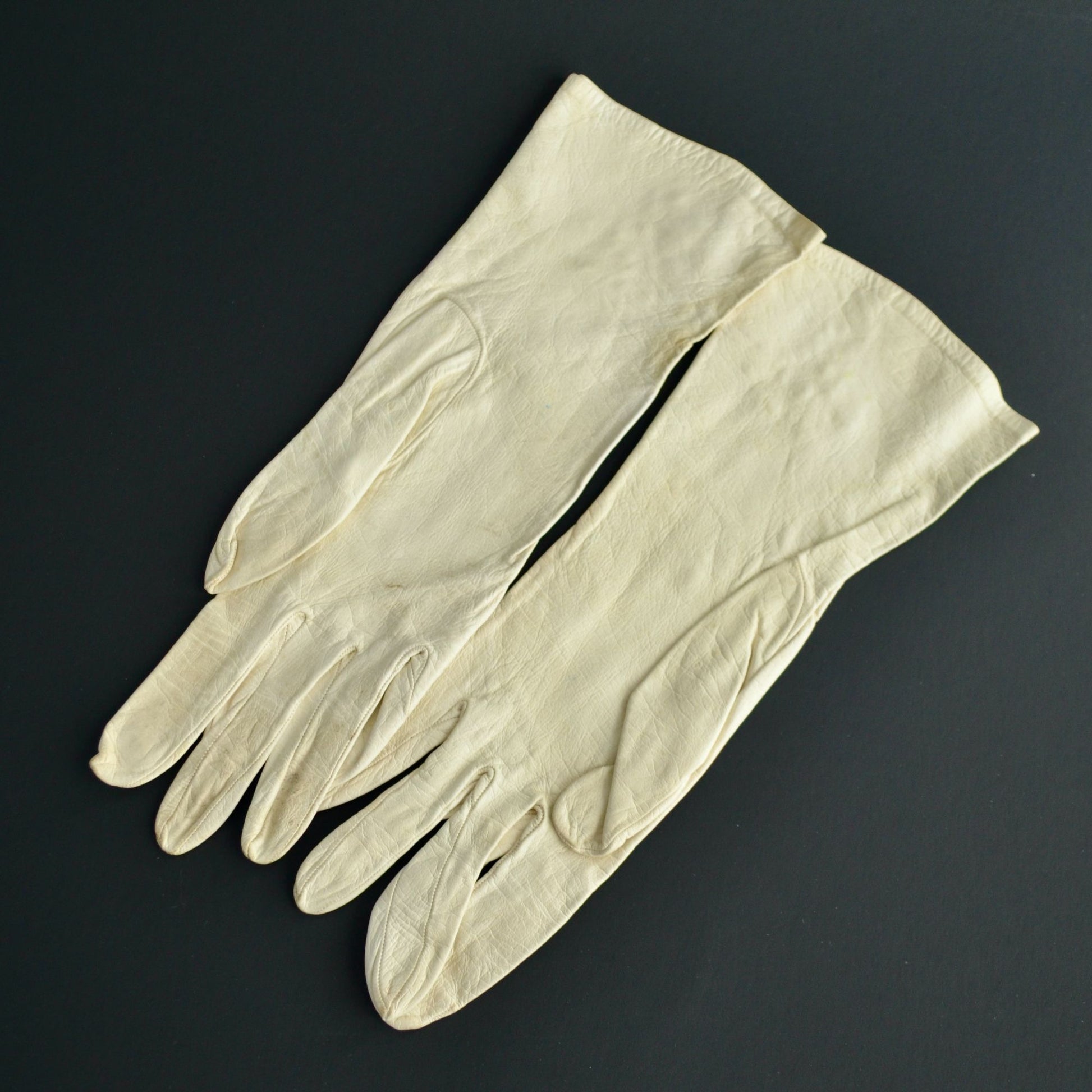 Marked with the brand name inside and also a 7/2 (size maybe?). Good used condition. Some discoloration from use/storage.