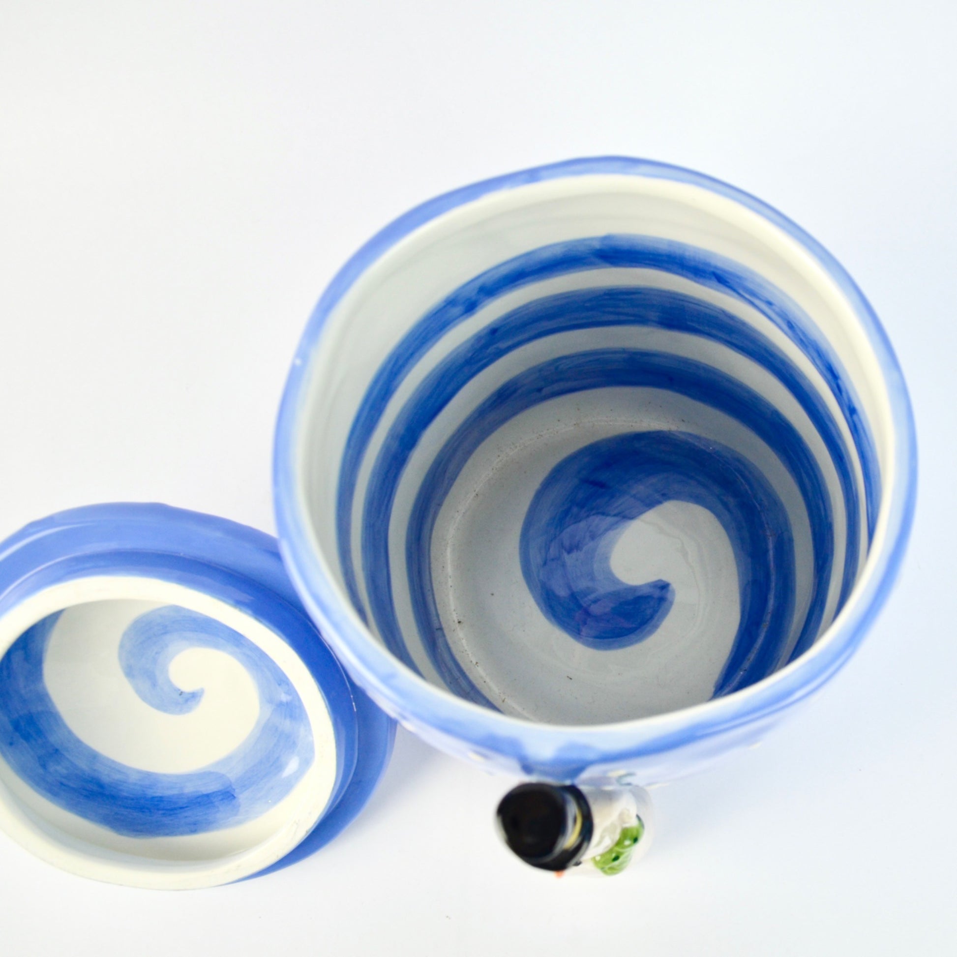 Very good condition. Measures approx. 11" total height with lid. 6" diameter.