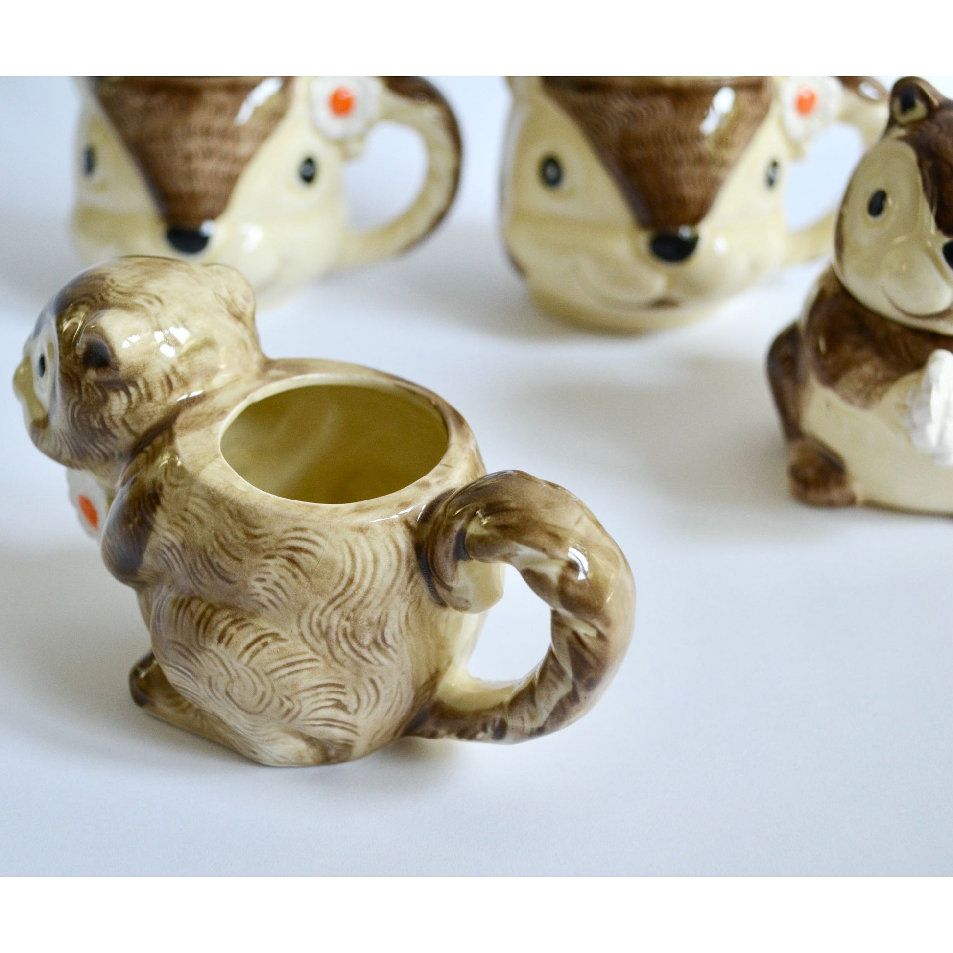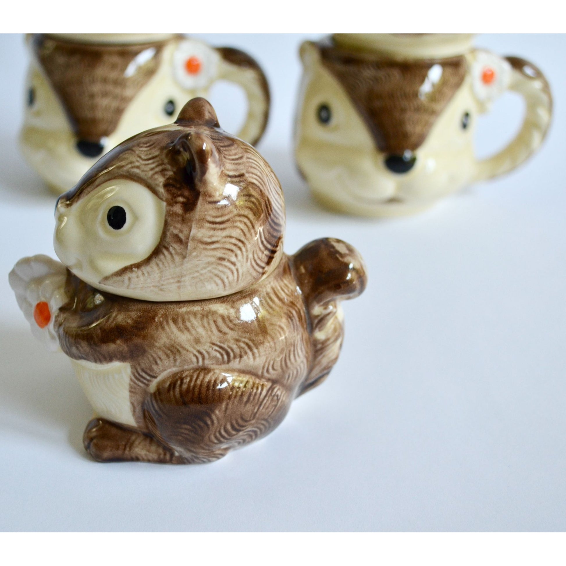 Enesco 1979 Japan Squirrel Chipmunk Anthropomorphic Mugs Creamer & Sugar Set