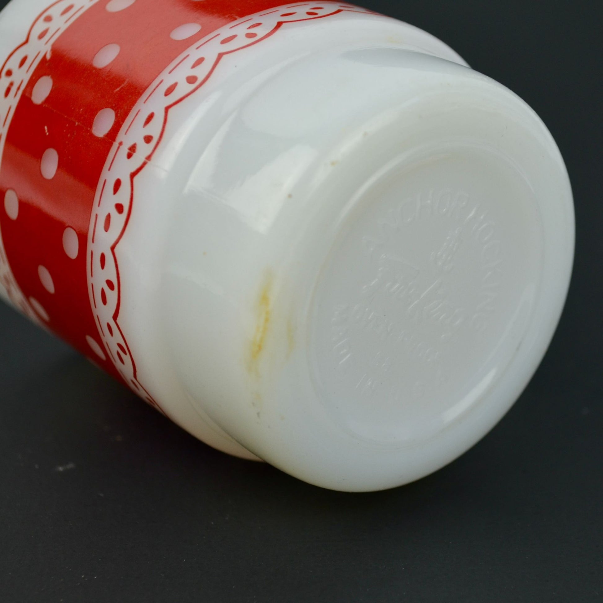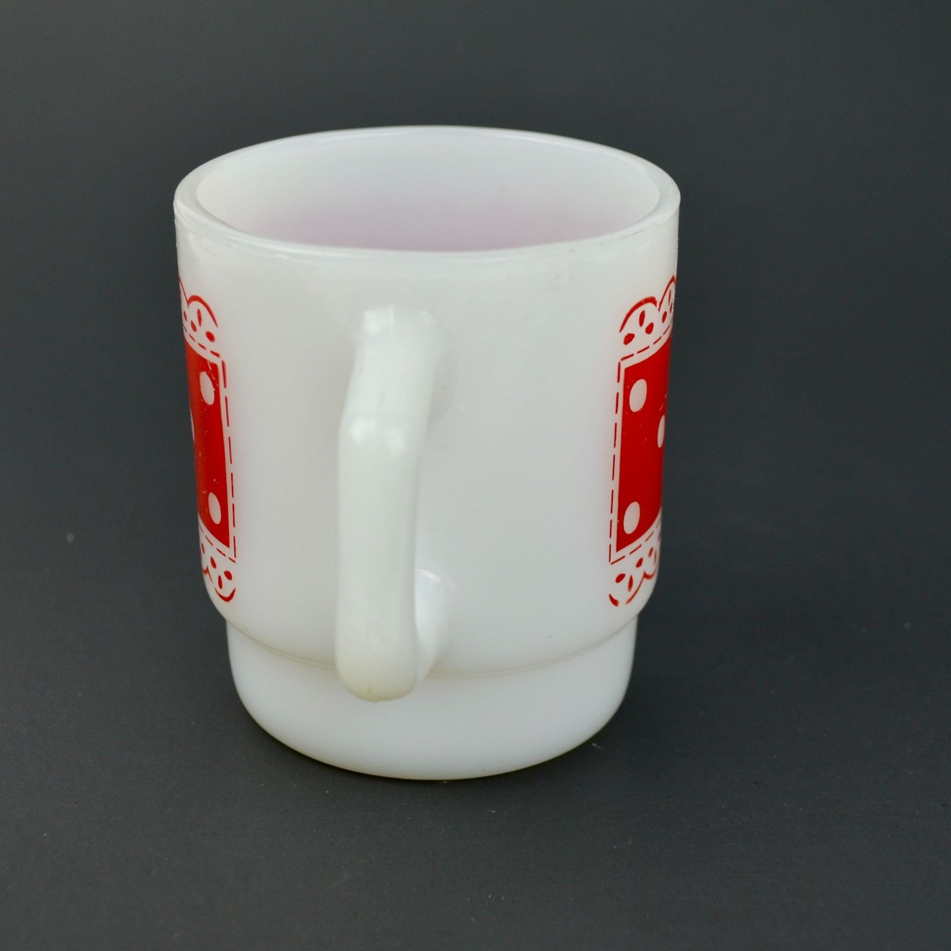 Fire-King Anchor Hocking Red Polka Dots Lace Milk Glass Coffee Mug