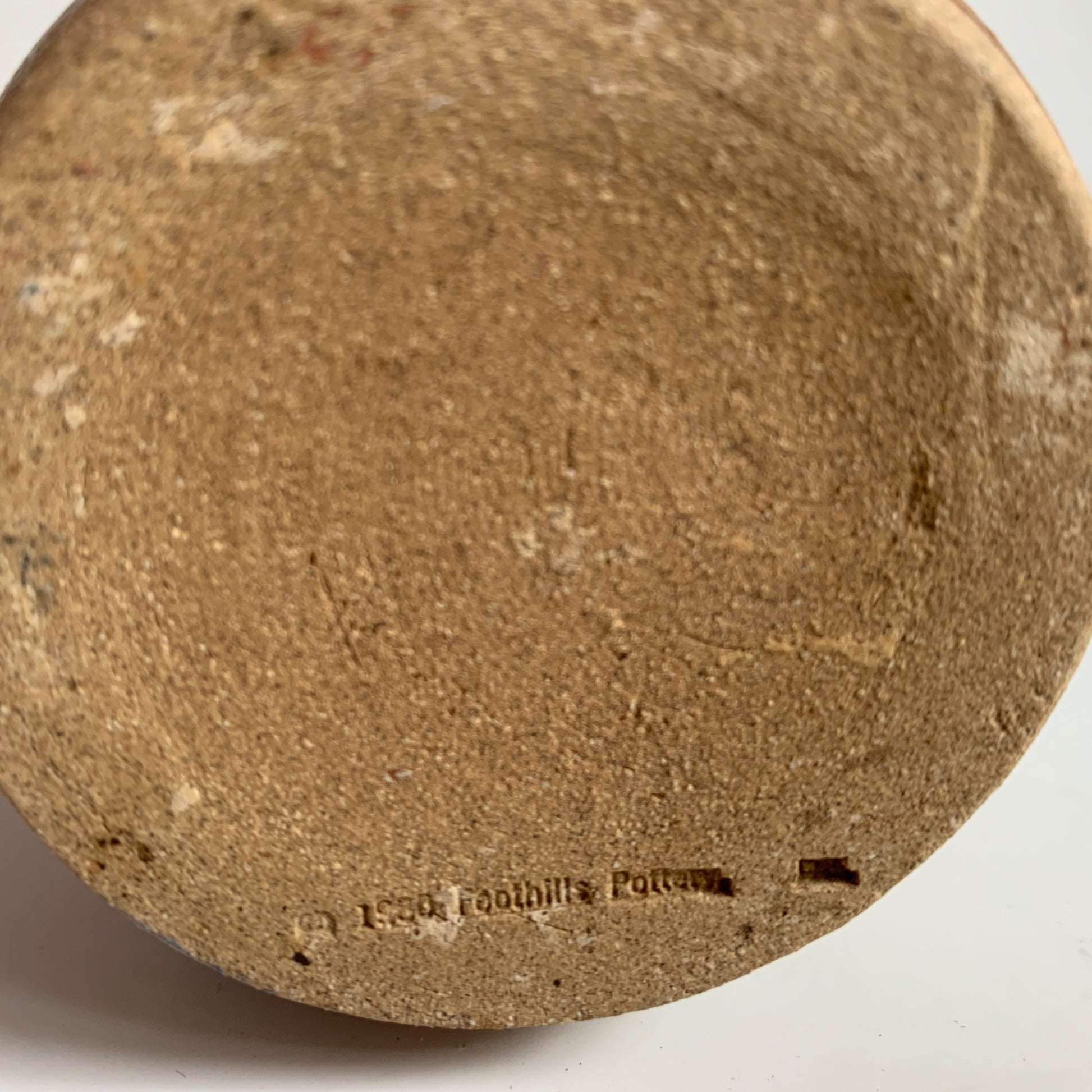 Excellent condition. Measures 10.75" tall. Face detail on front. Stamped Foothills Pottery 198x (can't read the last digit) on the bottom.