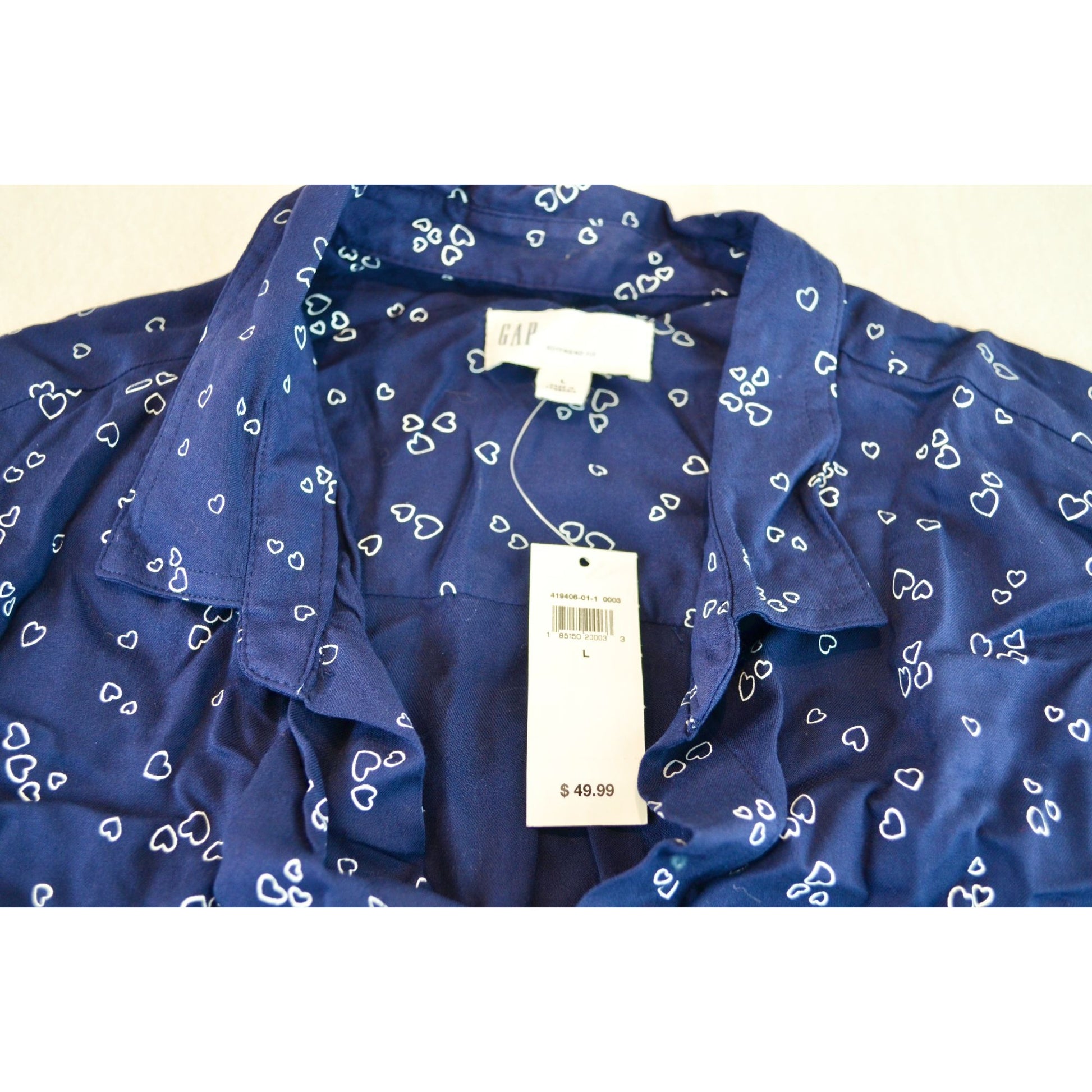 GAP Print Utility Drapy Boyfriend Shirt Tiny Heart White Blue New Large